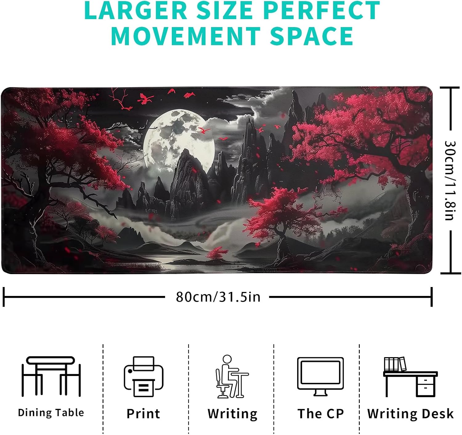 - Extended Size: The Japanese Mouse Pad Is Large Enough, 11.8''X 31.5'' ( 800mm X 300mm X 3mm), Will Fit Your Desktop Perfectly And Provide Perfect Movement Space, Offers Plenty Of Room For Gaming Or Office Works All While Protecting Your Desk, Applies To All Types Of Mouse Keyboards And More.