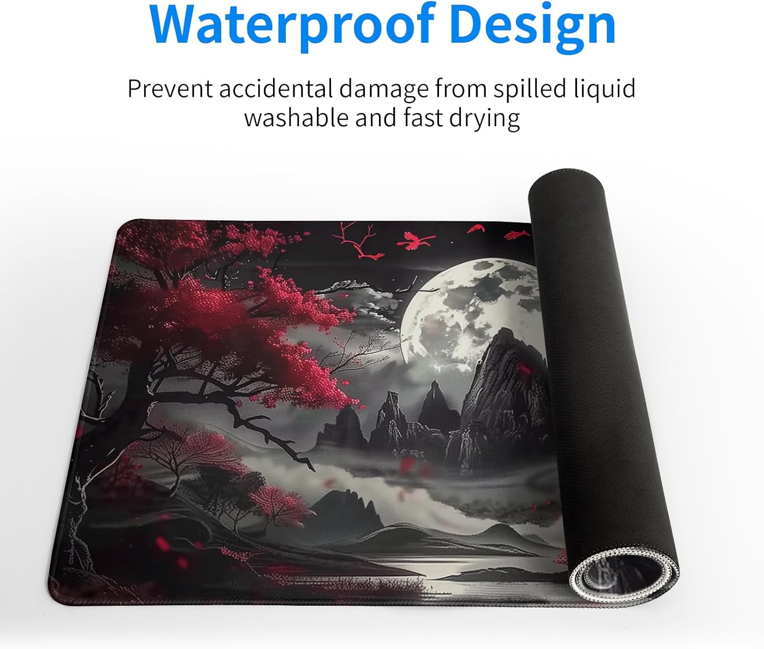 Mousepad 31.5 x 11.8 inches, Large Gaming Mouse Mat with Non-Slip Base, Extended Anime Mouse pad, Full Keyboard Mat with Stitched Edges for Gaming and Office (Red Moon)