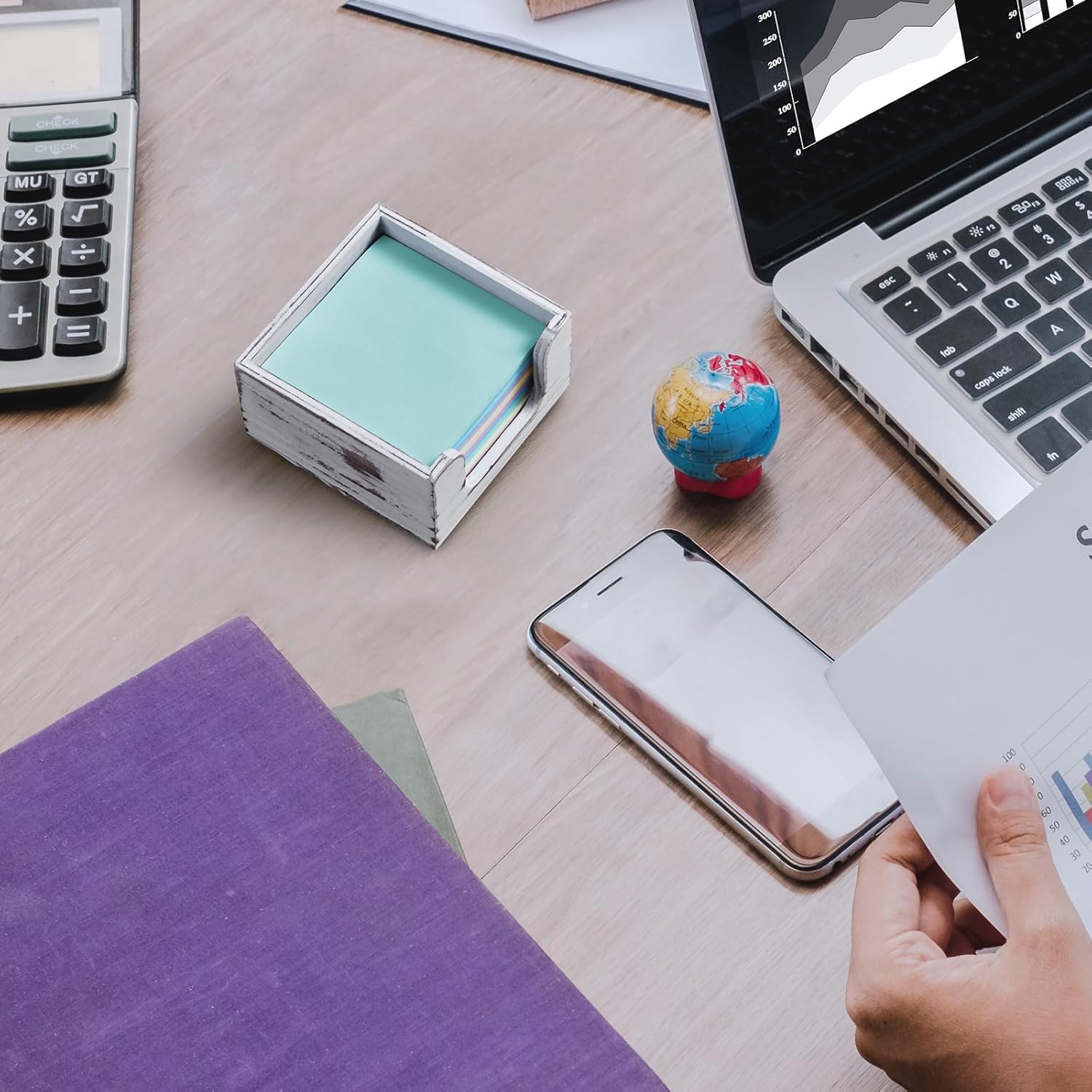 Wood Sticky Note Holder, White Washed Wooden Post It Note Dispenser for Office Desk Accessories, Self Stick Note Pad Holder, Memo Pad Holder Dispenser Organizer for School Office Desk Supplies