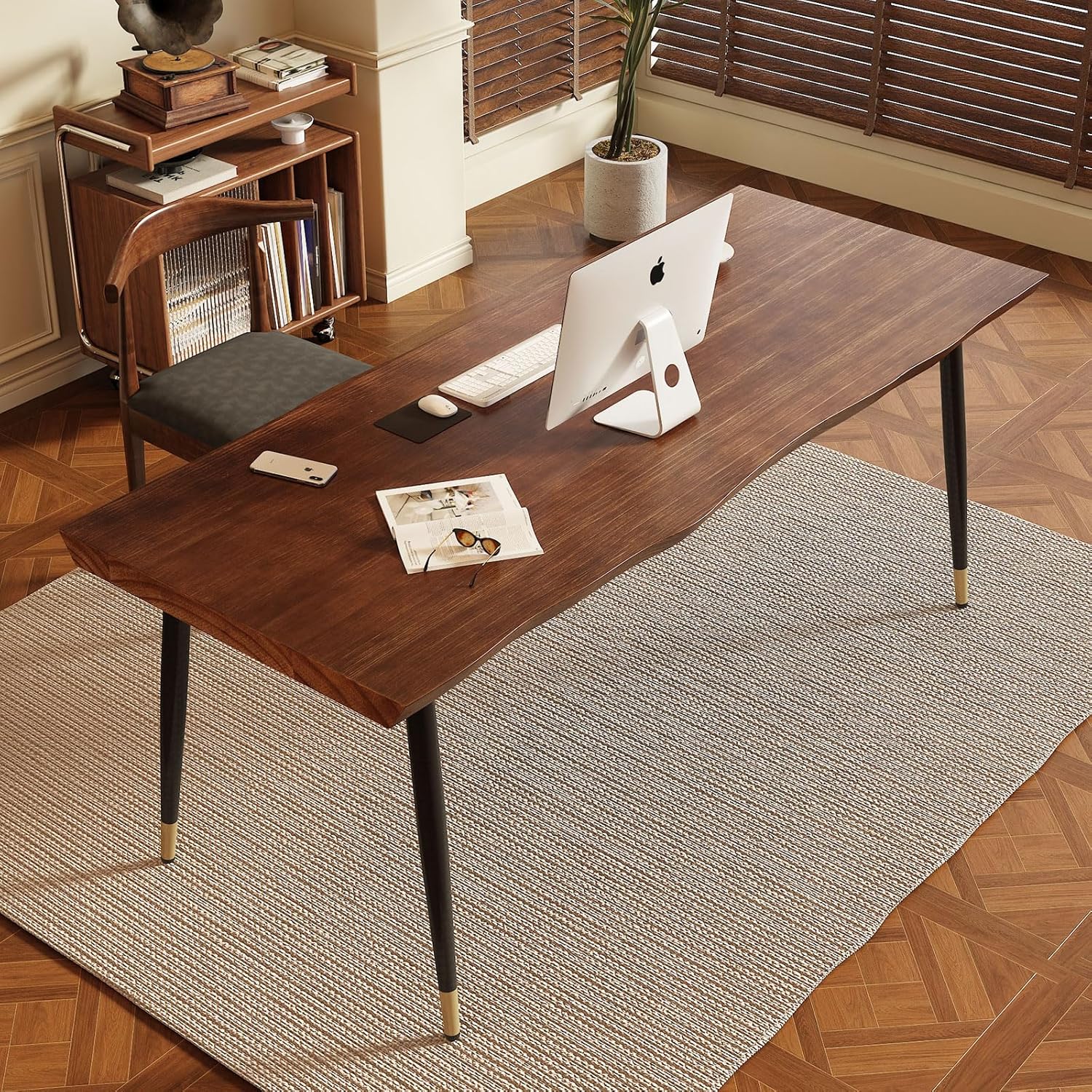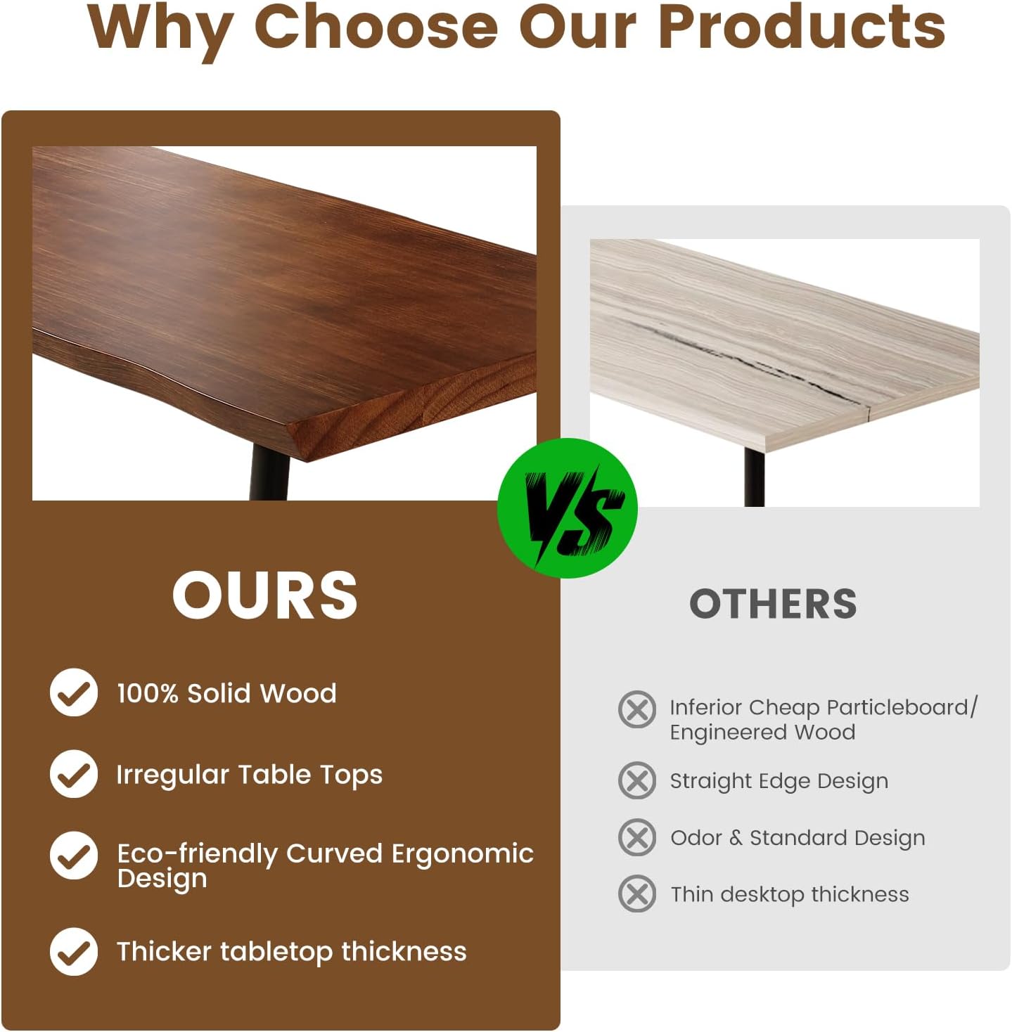 - ăSolid Wood Office DeskăThe dark brown real wood desk seamlessly blends with various interior decor styles.Industrial modern natural look and crafting, plus its exquisite wood grain, all contribute to its personality and the way it enlivens a room and makes an impression.
