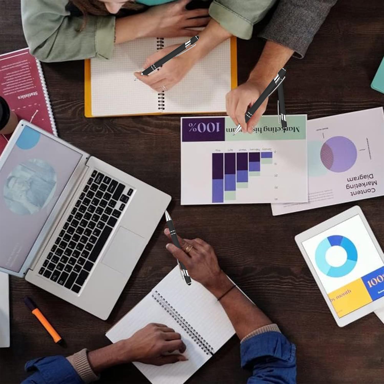 12 PCS 2 in 1 Stylus Ballpoint Pen with Stylus Tip, 1.0 mm Black Ink Metal Pen Stylus Pen for Touch Screens (Silver & Black)