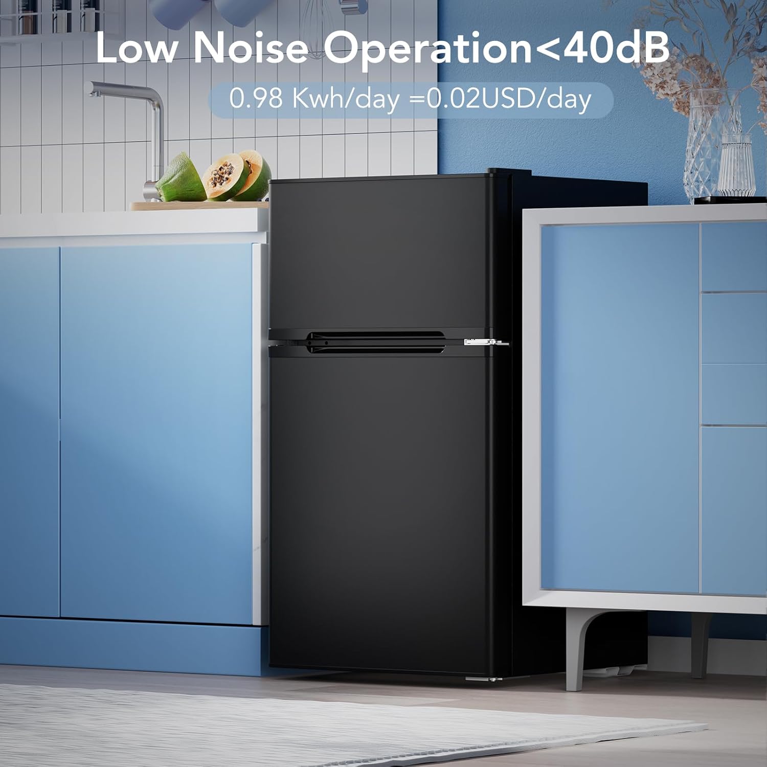 - The small refrigerator adopts R600 high-efficiency low-energy-compression compressor is adopted, cooling fast and low noise<38dB, this mini refrigerator is ideal for everyday use without driving up your electricity bill. Designed to save energy while maintaining consistent cooling performance.