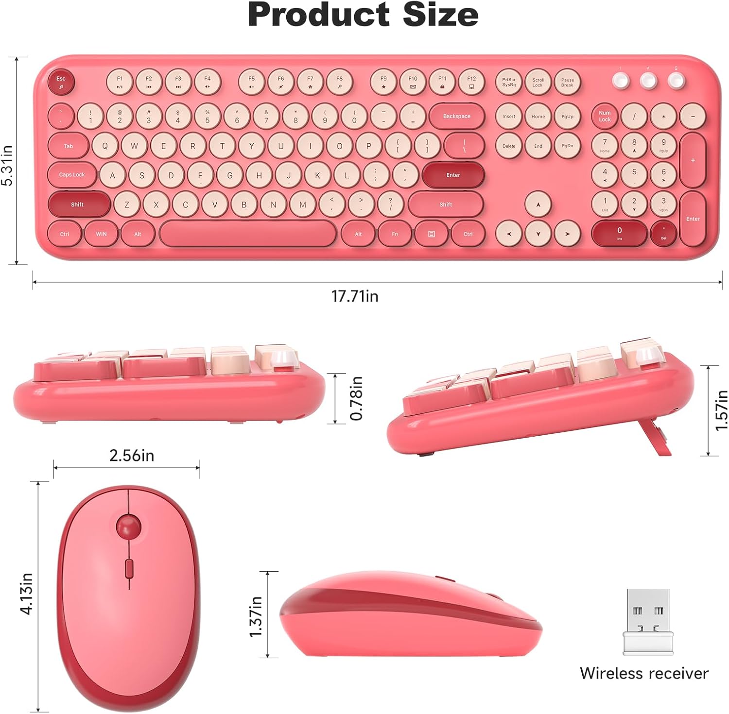 - Wireless Keyboard and Mouse Combo: 104-key colorful keyboard with floating round keys, with foldable stand and anti-slip pad ensures comfortable typing. Optical mice with 3 sensitivity levels provides precise control.