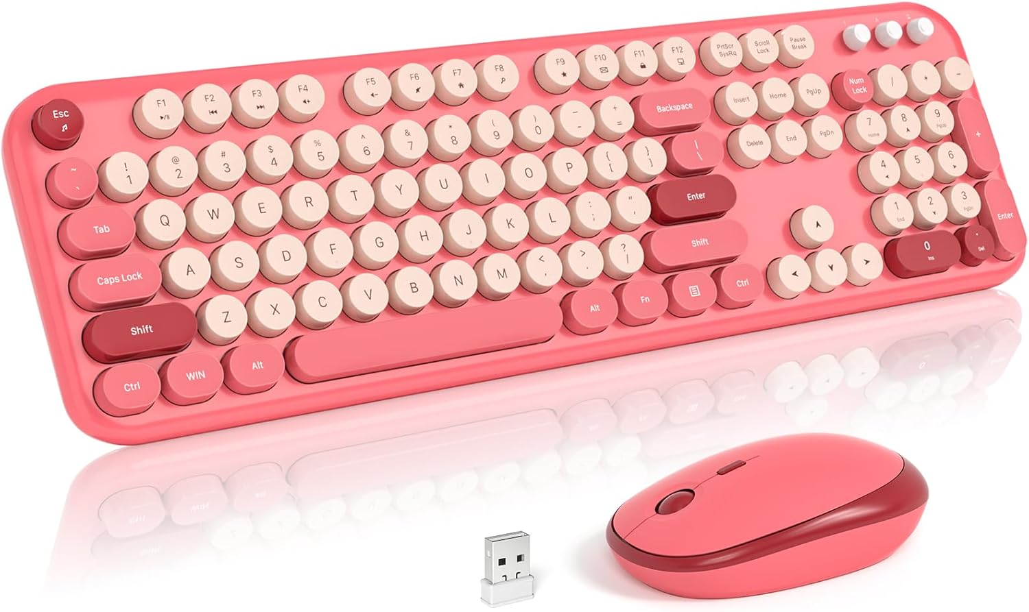 MOFII Wireless Keyboard and Mouse, Retro Typewriter Keyboard and Silent Mouse, 2.4GHz Full Size Keyboard and Mouse Wireless Combo for Laptop, PC, Desktop, Windows (Hot Pink)