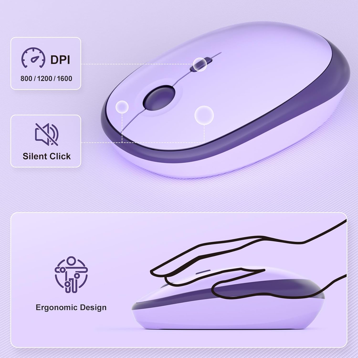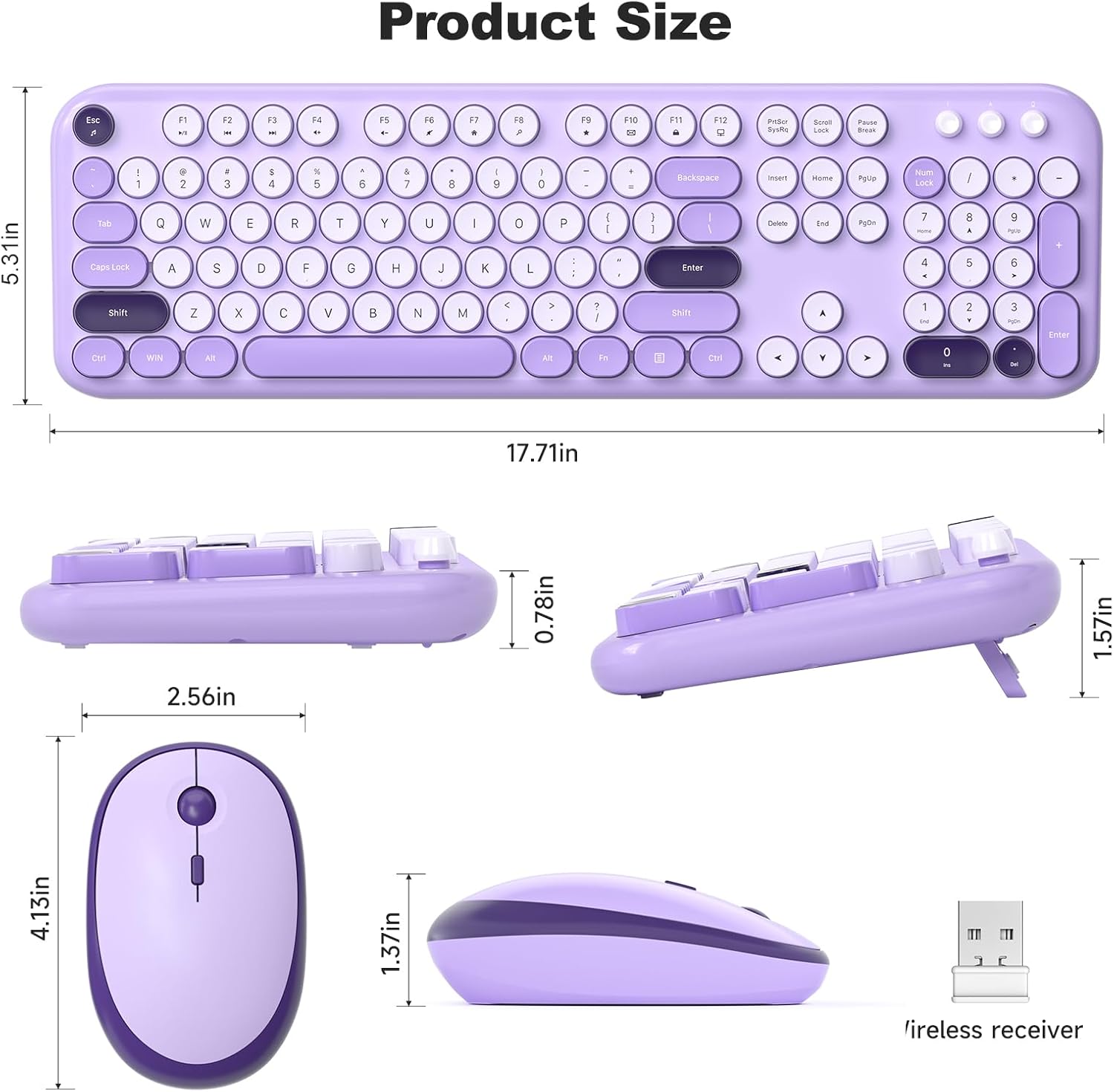 MOFII Wireless Keyboard and Mouse, Retro Typewriter Keyboard and Silent Mouse, 2.4GHz Full Size Keyboard and Mouse Wireless Combo for Laptop, PC, Desktop, Windows (Violet)