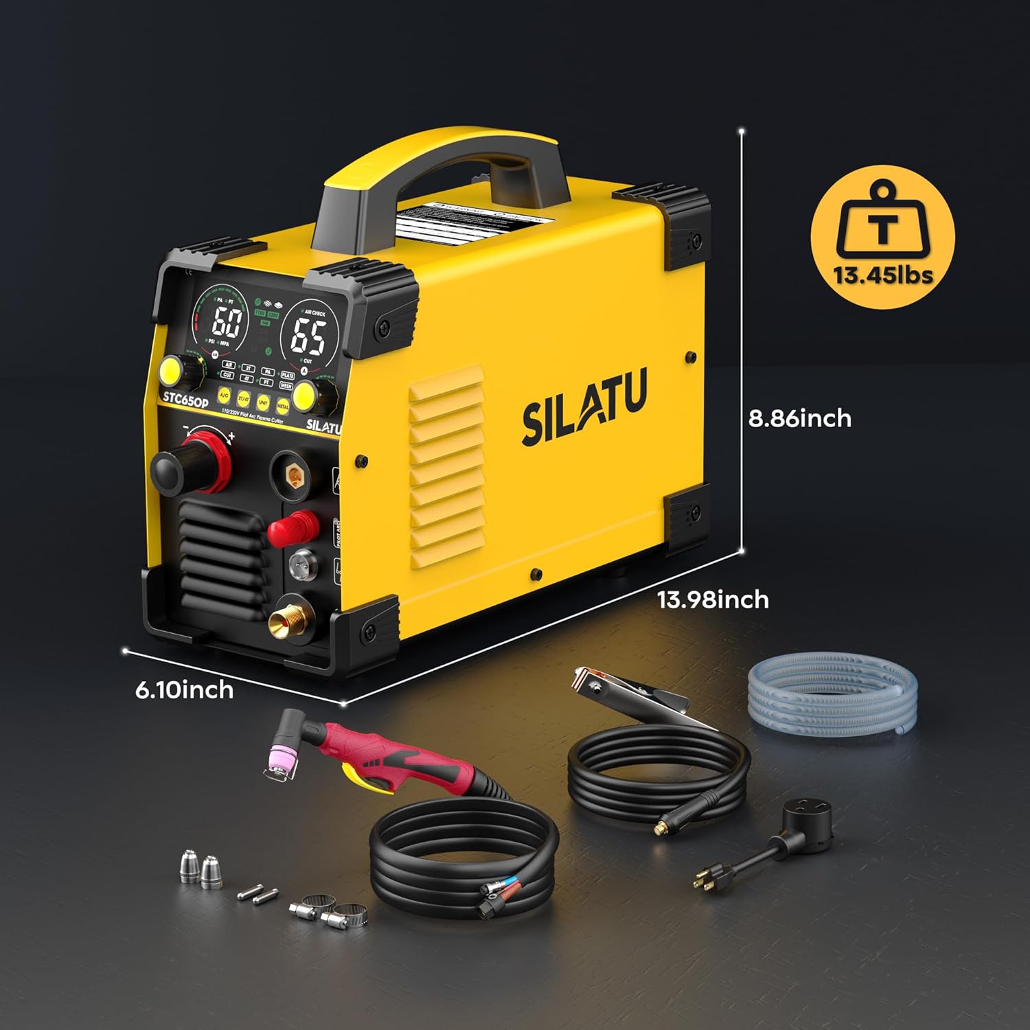 SILATU 65Amps Plasma Cutter, Large LED Display, Non-Touch Pilot Arc, Air Sensor Technology, 110/220V Dual Voltage IGBT Inverter Plasma Cutter Machine, 14mm Clean Cutting Thickness for Beginners DIY