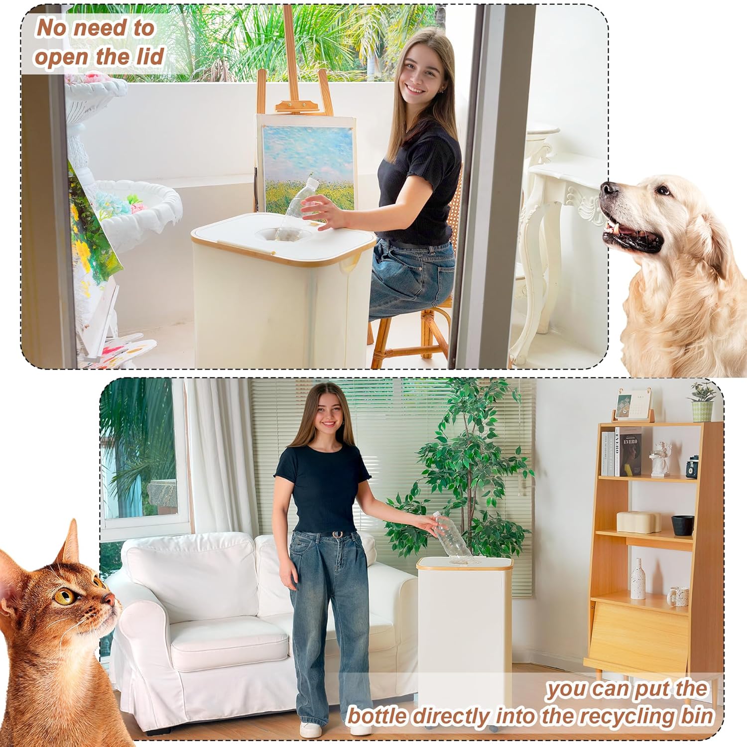 - 【Comfortable Grip Bamboo Handle】The smooth bamboo handle provides a comfortable grip without causing discomfort to your hands. The lid helps suppress odors and keeps the environment clean. This kitchen trash can offers ample storage space for efficiently organizing bottles, keeping your home or dorm room tidy and orderly.