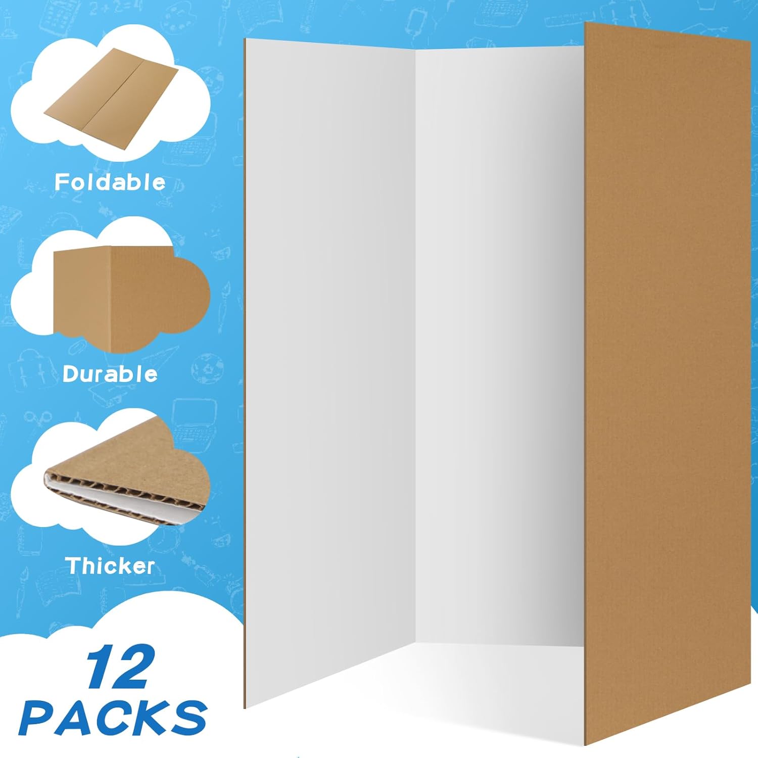 VinTS 12PCS Trifold Poster Board 36" x 48" White Trifold Display Boards,Large&Sturdy Foldable Poster Board for School Projects, Science Fair,Business Presentations,Exhibitions, Event Displays