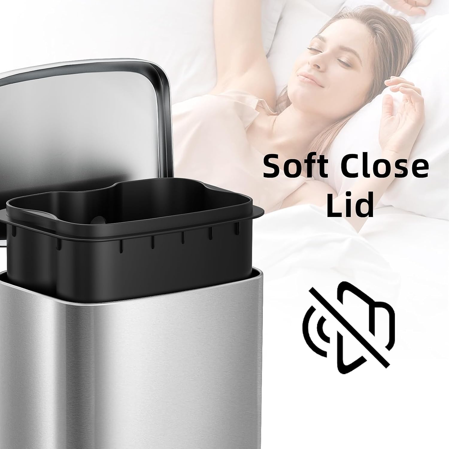 - Silent & Soft Closure: Unlike conventional bathroom garbage can that create noise when opened or closed, our bathroom trash can features a slow-close lid that lowers gently, minimizing unwanted sound. You can use it confidently without worrying about disturbing your family. Enjoy a quieter bathroom experience!