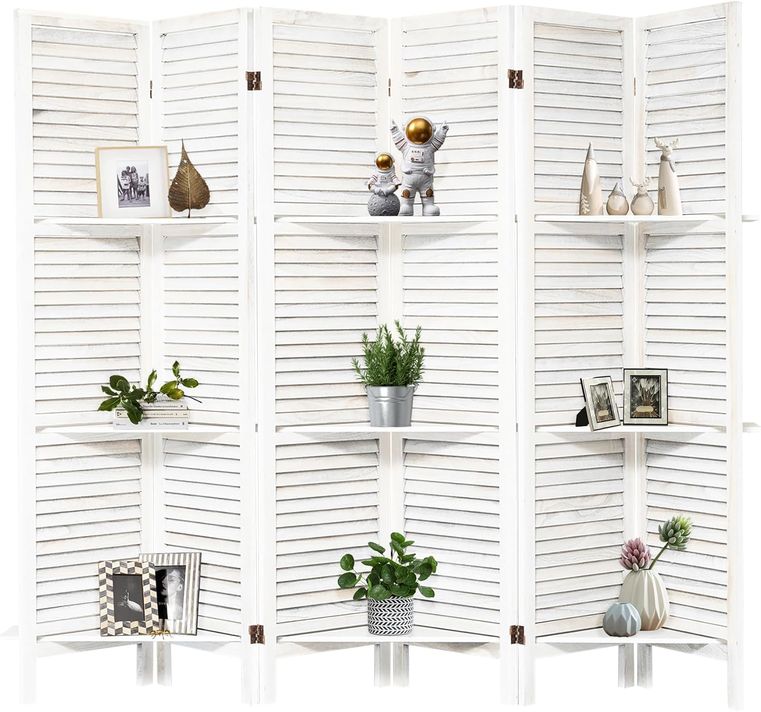 NicBex 6 Panel Room Divider 5.6FT Louvered Design Room Dividers with Display Storage Shelves Folding Privacy Screens Portable Freestanding Partition Wall Dividers for Home Bedroom Office, White