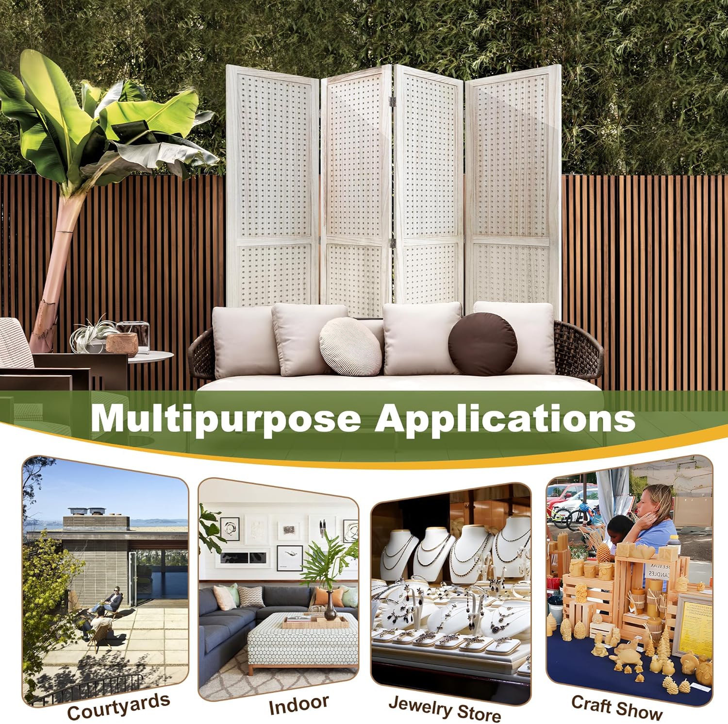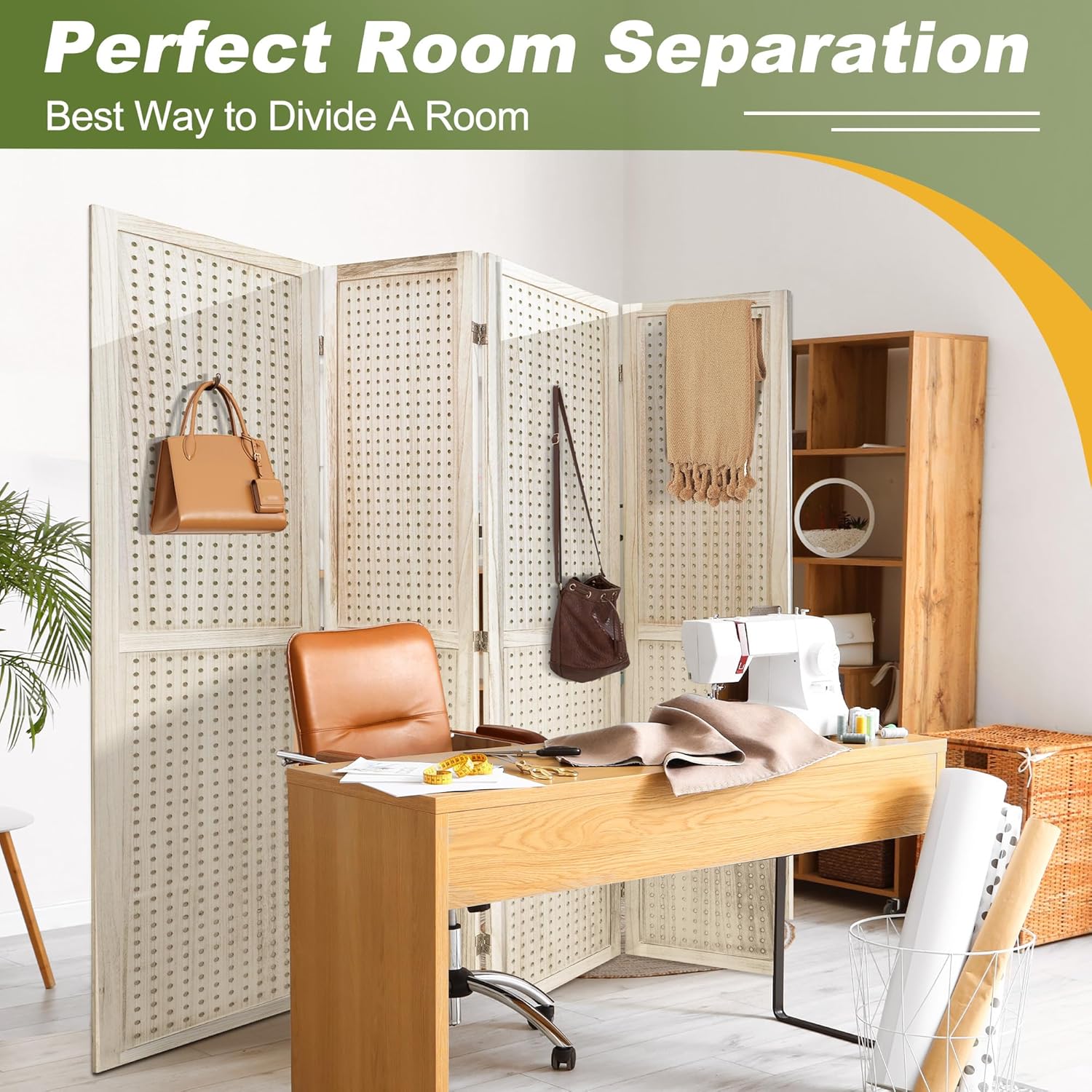 - Versatile Pegboard Panel Design: Our pegboard panel features 0.3-inch diameter holes spaced 1 inch apart, compatible with various peg hooks. This room divider doubles as a decorative folding privacy screen or wall organizer and is a freestanding display panel for trade shows, craft fairs, department stores, and more.