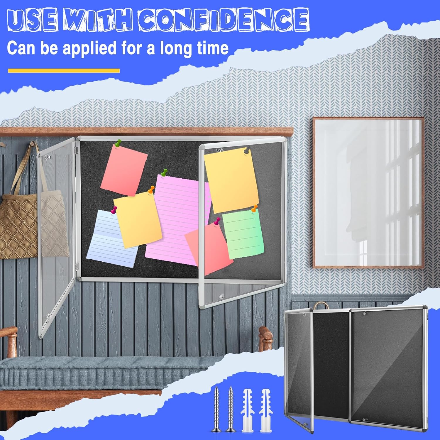 - Wide Application: the bulletin board cabinet is suitable for schools, offices, shops, homes, apartments, hospitals, dormitories, classes and other public places, and can be applied for multiple purposes, such as posting notice and announcements, displaying artwork or photos, and presenting public information