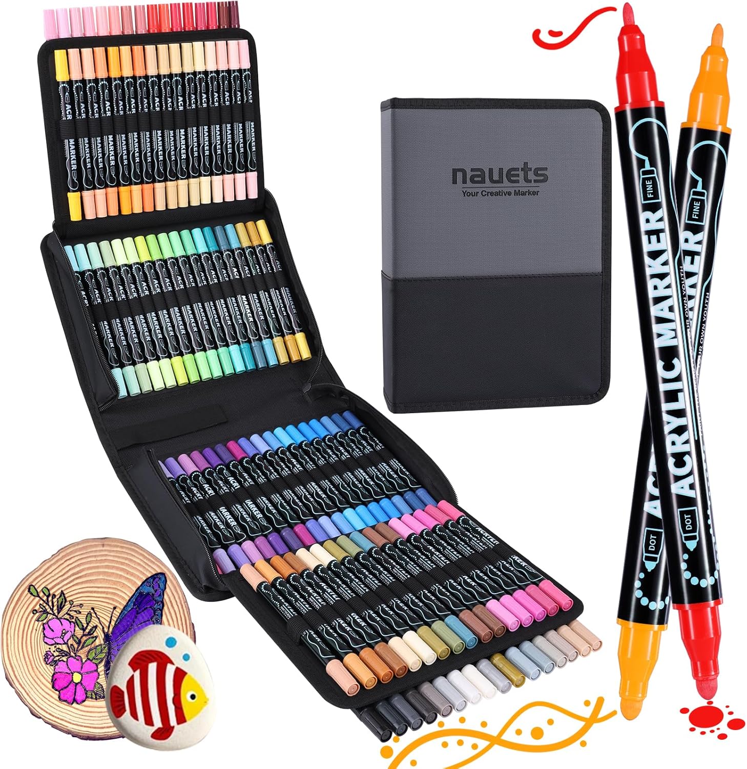 100 Colors Waterproof Dual Tip Acrylic Paint Pens, Dot & Fine Tip Premium Coloring Drawing Markers Set for Wood, Rock, Canvas, Glass, Ceramic Surfaces and DIY Crafts Making Art Supplies