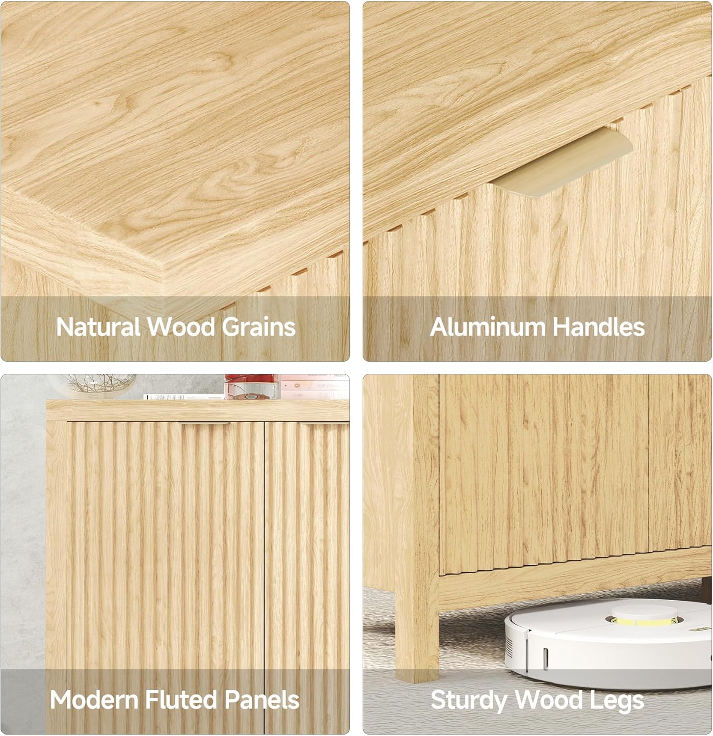 Real Relax Fluted Buffet Cabinet with Storage, Modern Sideboard with 4 Doors, 3 Adjustable Shelves, Large 55'' Kitchen Credenza Coffee Bar Cabinet, Console Cabinets for Living, Dinning Room, Natural