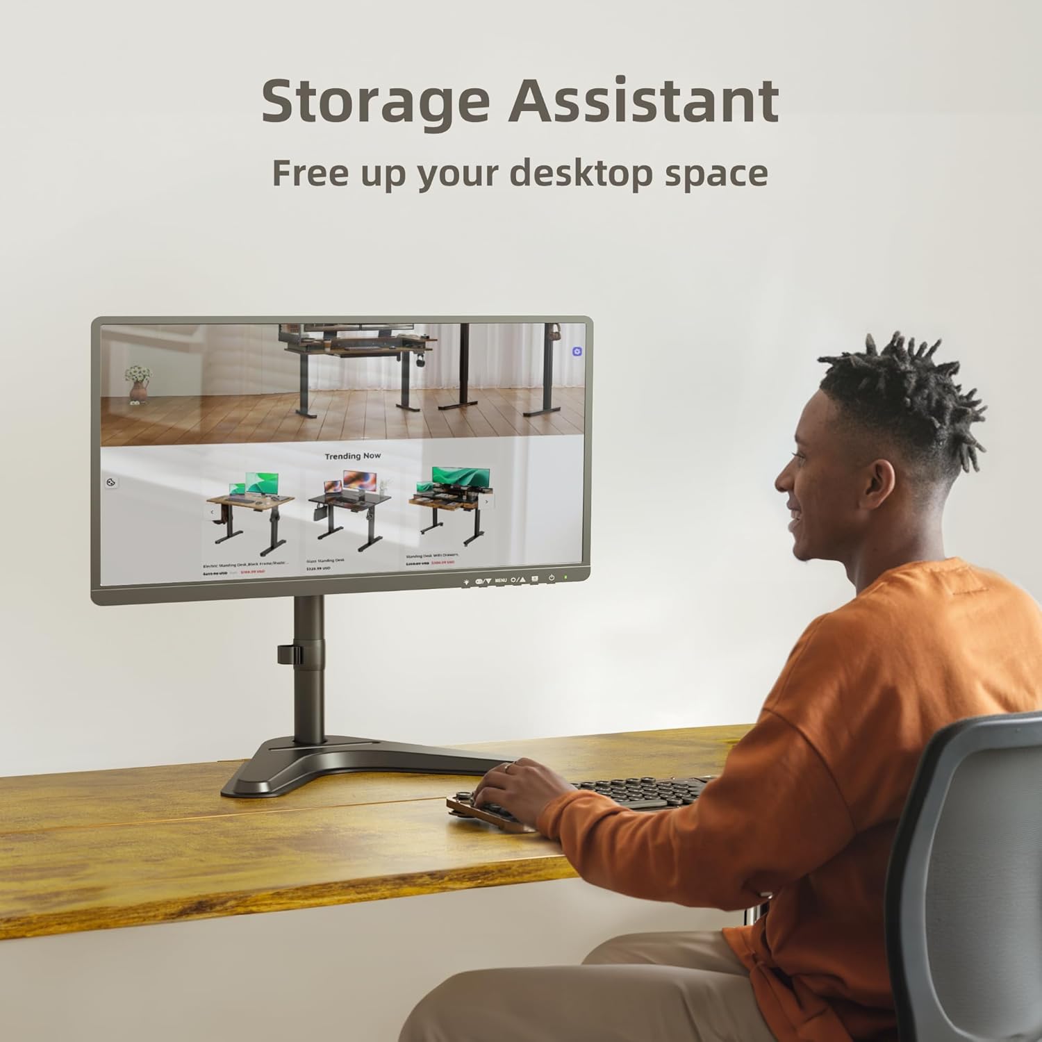 - Full Motion Adjustment: This monitor stand offers multi adjustability with +90°/-90° swivel, and +45°/-45° tilt. These features allow for optimal screen positioning to enhance workspace organization and efficient use of desk space.