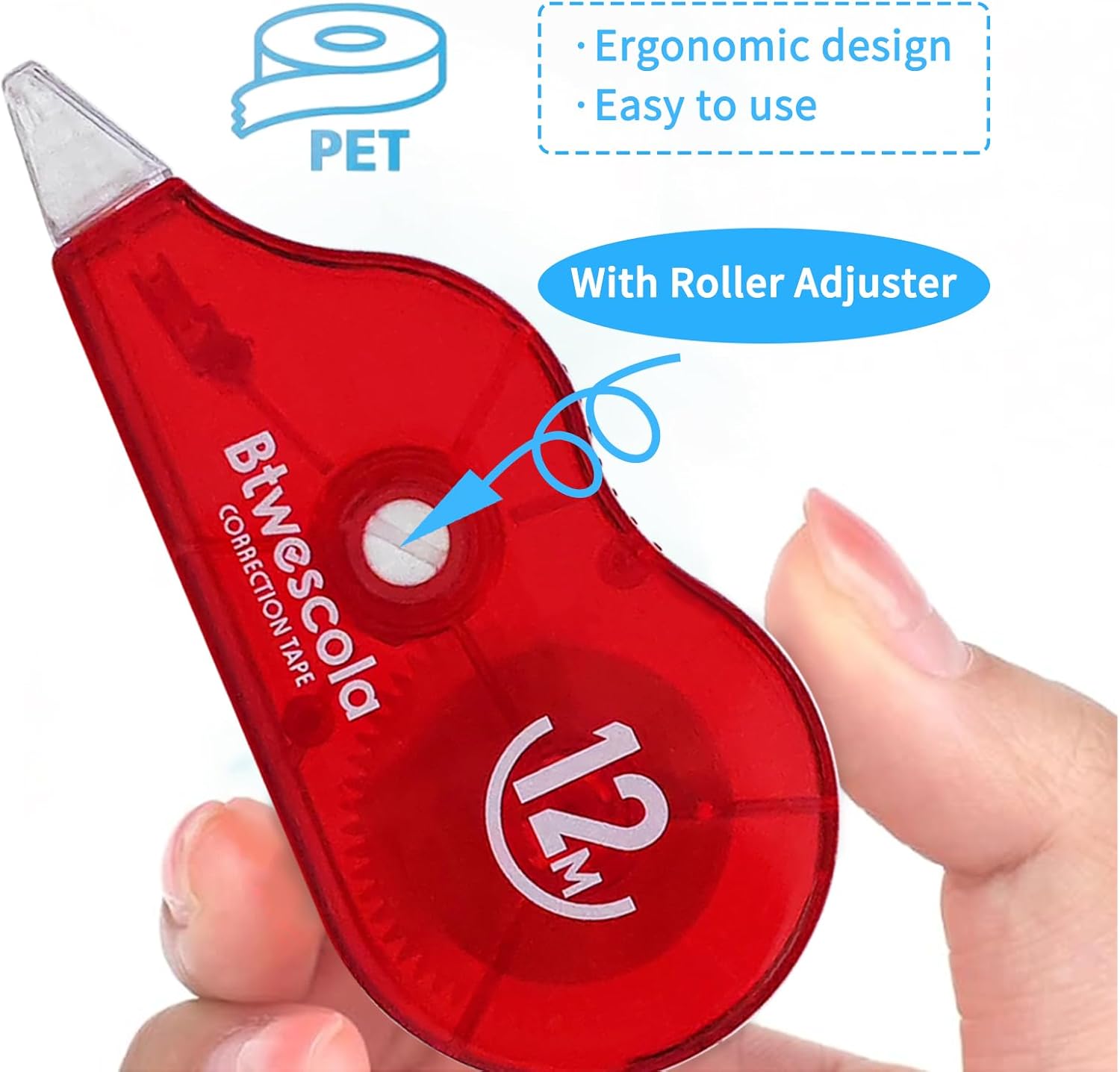 - Quality Made & Ergonomic Design: The correction tape dispenser is equipped with high quality PET carrier tape instead of paper tape, which is tear-resistant and adhesive enough to do the job well. The ergonomic design brings more comfortable grip.