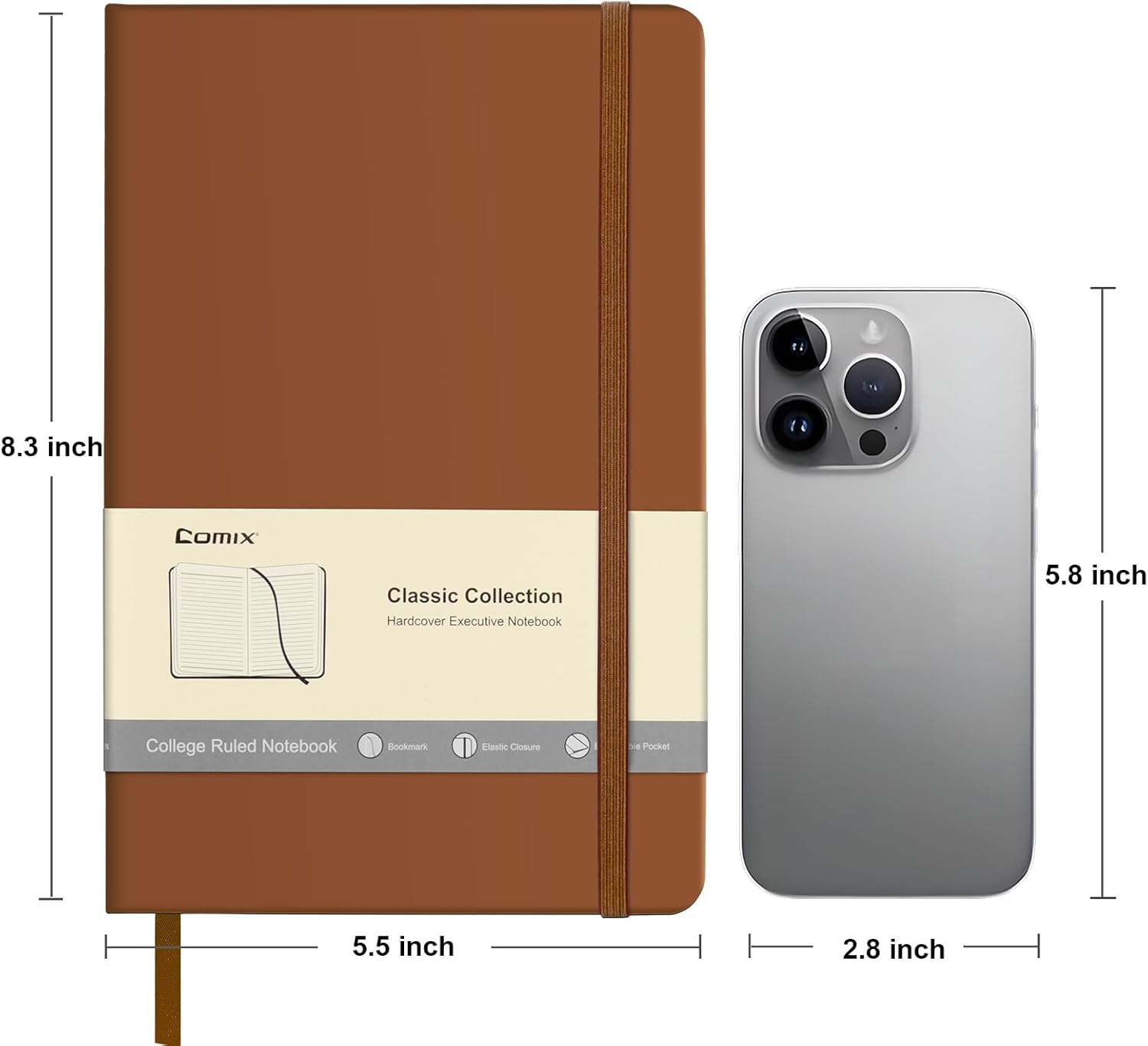 Comix Lined Journal Notebook for Women Men, Journaling Notebooks for Office School Home, Brown, 240 Pages, 5.5" x 8.3", College Ruled, A5, Hardcover