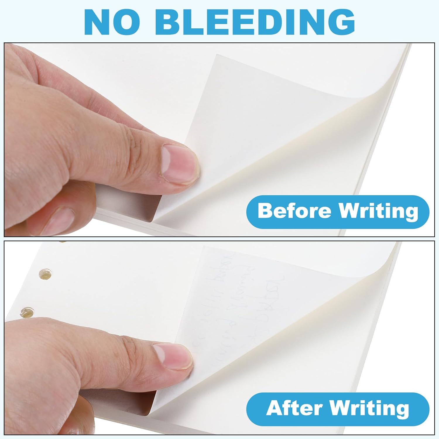 - Advantage: These refill papers are made of 100gsm paper, which can be written on both sides, ink is not easy to penetrate, the paper is smooth and not rough, and writing is more convenient. The texture and thickness of the paper are suitable for various writing tools, suitable for fountain pens, gel pens, ballpoint pens, highlighters, pencils, etc. The punched design ensures compatibility with various binder systems.