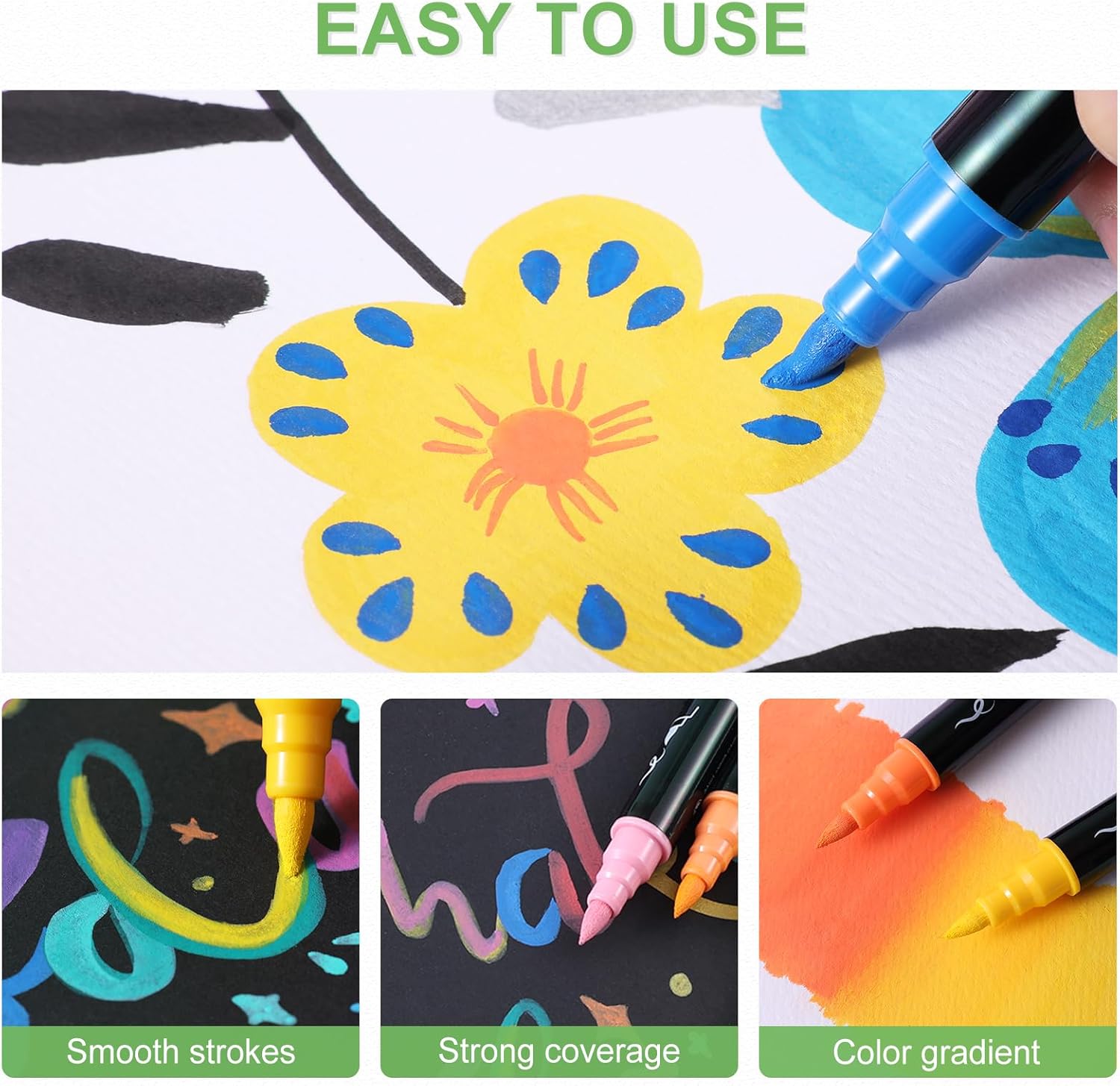 - Upgraded Waterproof and Easy to Use: Unlike ordinary push-type acrylic pens, our craft supplies acrylic paint pens require no shaking or pressing to use. Just open the cap and start creating. Made with professional-grade acrylic paints, odorless and non-toxic, vibrant colours, fast drying, non-fading, smooth flow without leakage, strong coverage and waterproof. It's the perfect choice for maintaining the vividness and beauty of your art works.