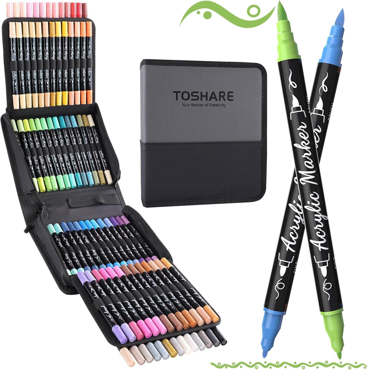 80 Colors Acrylic Paint Markers, Waterproof Dual Tip Acrylic Paint Pens with Brush and Fine Tip, Markers Set for Paper, Rock, Wood, Canvas, Glass, Ceramic and DIY Crafts Making Art Supplies