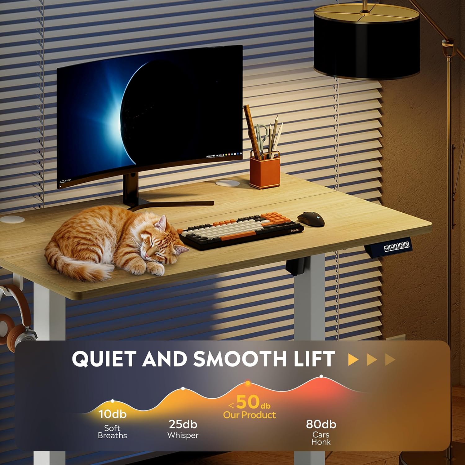 - ăSmooth Height AdjustmentsăTri-motor system delivers whisper-quiet (<50dB) height transitions (28.35"-46.45") in seconds, eliminating manual adjustments and prevent desktop tilting. Standing desk adjustable height perfected for ergonomic shifts, ensuring buttery-smooth operation whether sitting or standing.