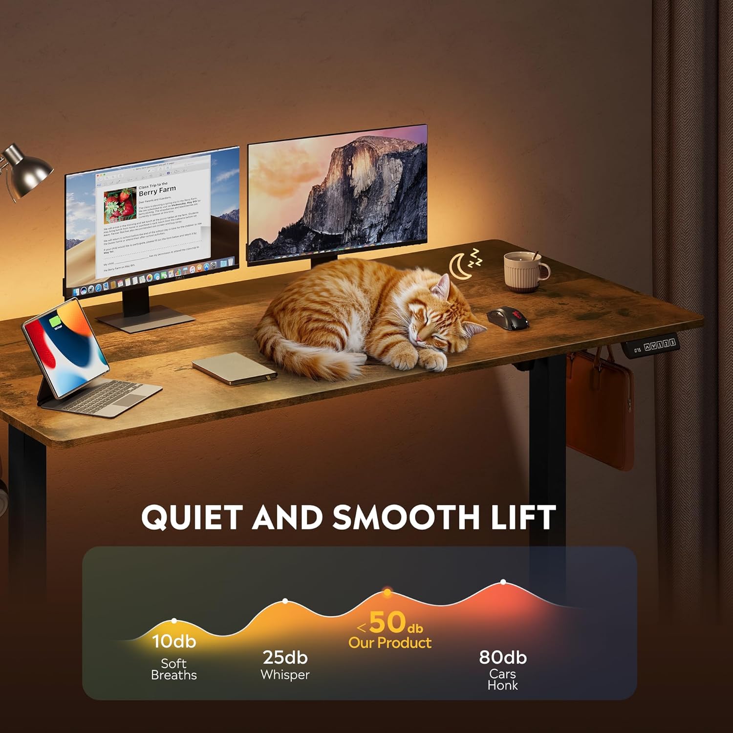 - ăQuite & Smooth Height AdjustmentsăTri-motor system delivers whisper-quiet (<50dB) height transitions (28.35"-46.45") in seconds, eliminating manual adjustments and prevent desktop tilting. Standing desk adjustable height perfected for ergonomic shifts, ensuring buttery-smooth operation whether sitting or standing.
