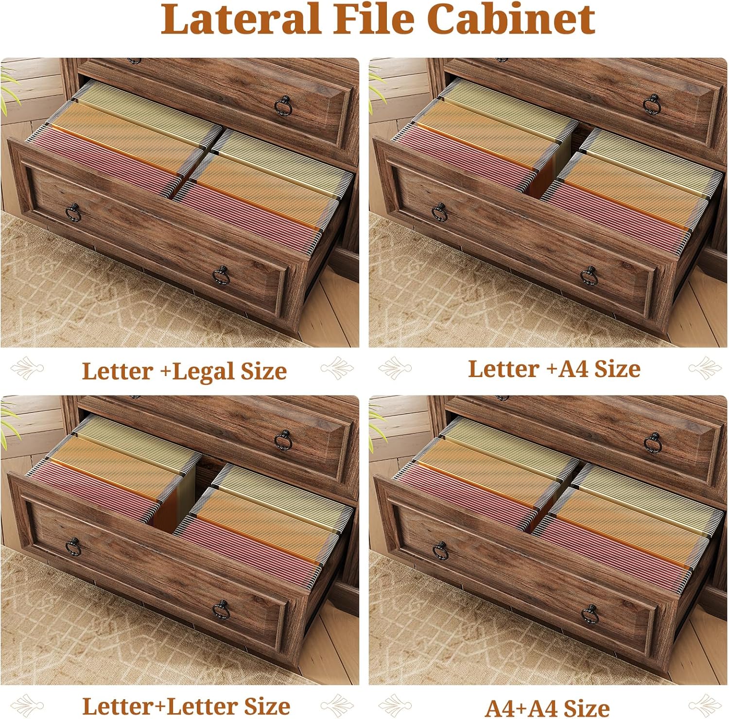- ă2 Drawer File CabinetăThe lateral file cabinet with 2 drawer file keeps hanging letter, legal, A4 size hanging file folders or other home office items. There is 3 adjustable space of drawer and you can choose file hanging bar to hold legal size, letter size or A4 size. This file cabinets 2 drawer is perfect for home office, workplace to keep your files at close.
