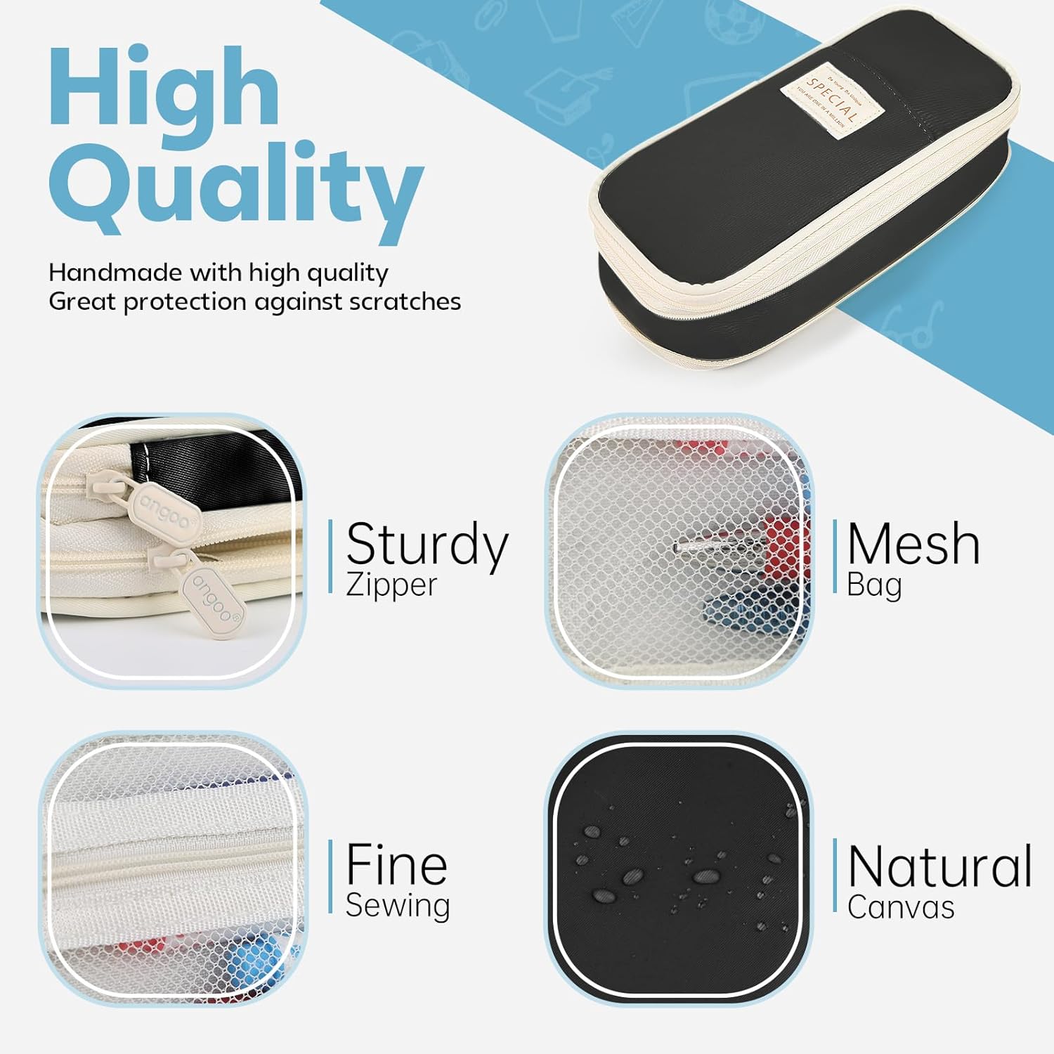 - šćDurable and ReliablećCrafted from high-quality materials and durable zipper, our pencil case is built to last. The sturdy construction ensures that your pens and other items are well-protected during transportation or storage. It withstands daily wear and tear, maintaining its shape and functionality.