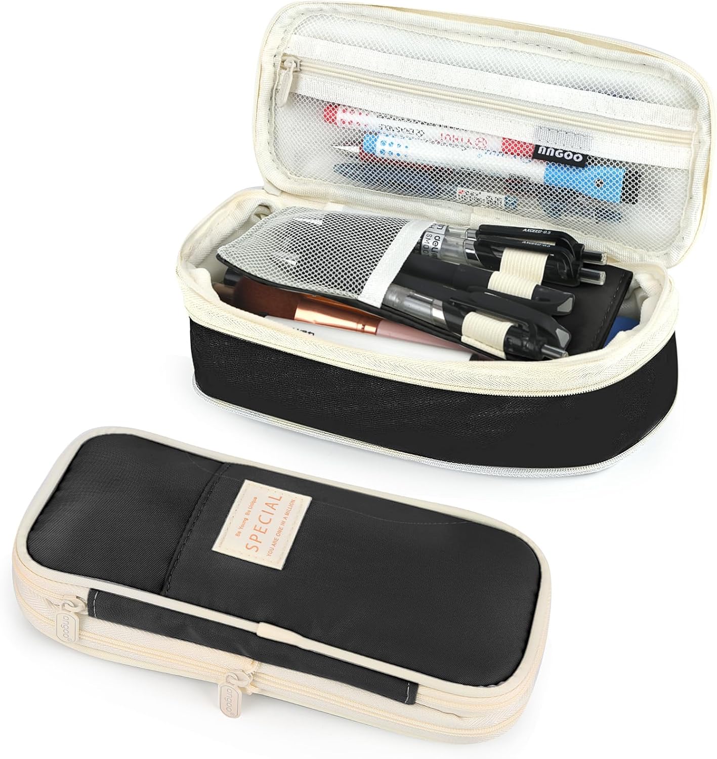 - šćVersatile StoragećThis pencil case is not only capable of holding pens but also perfect for organizing pencils, ballpoint pens, erasers, rulers, and other stationery items. Its well-designed compartments and slots ensure that your writing instruments and accessories stay securely in place.