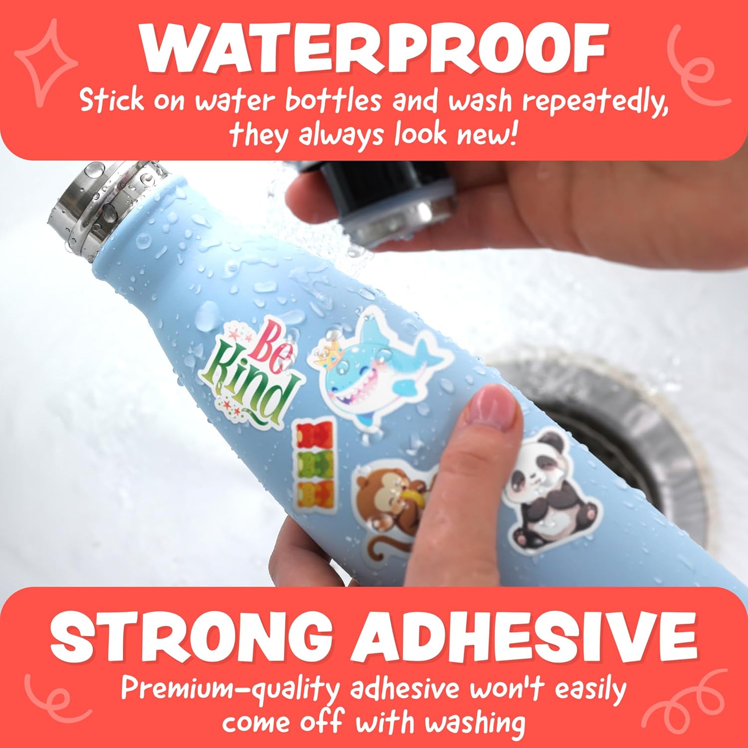 - Made from Durable, High-Quality Vinyl. These waterproof stickers for water bottles feature fun kawaii designs that stay vibrant through repeated washing. Teachers and students alike can reuse them to decorate water bottles, laptops, and classroom folders. A fun way to identify belongings and enhance classroom projects, they're perfect for back to school, art time, and kindergarten creativity stations.