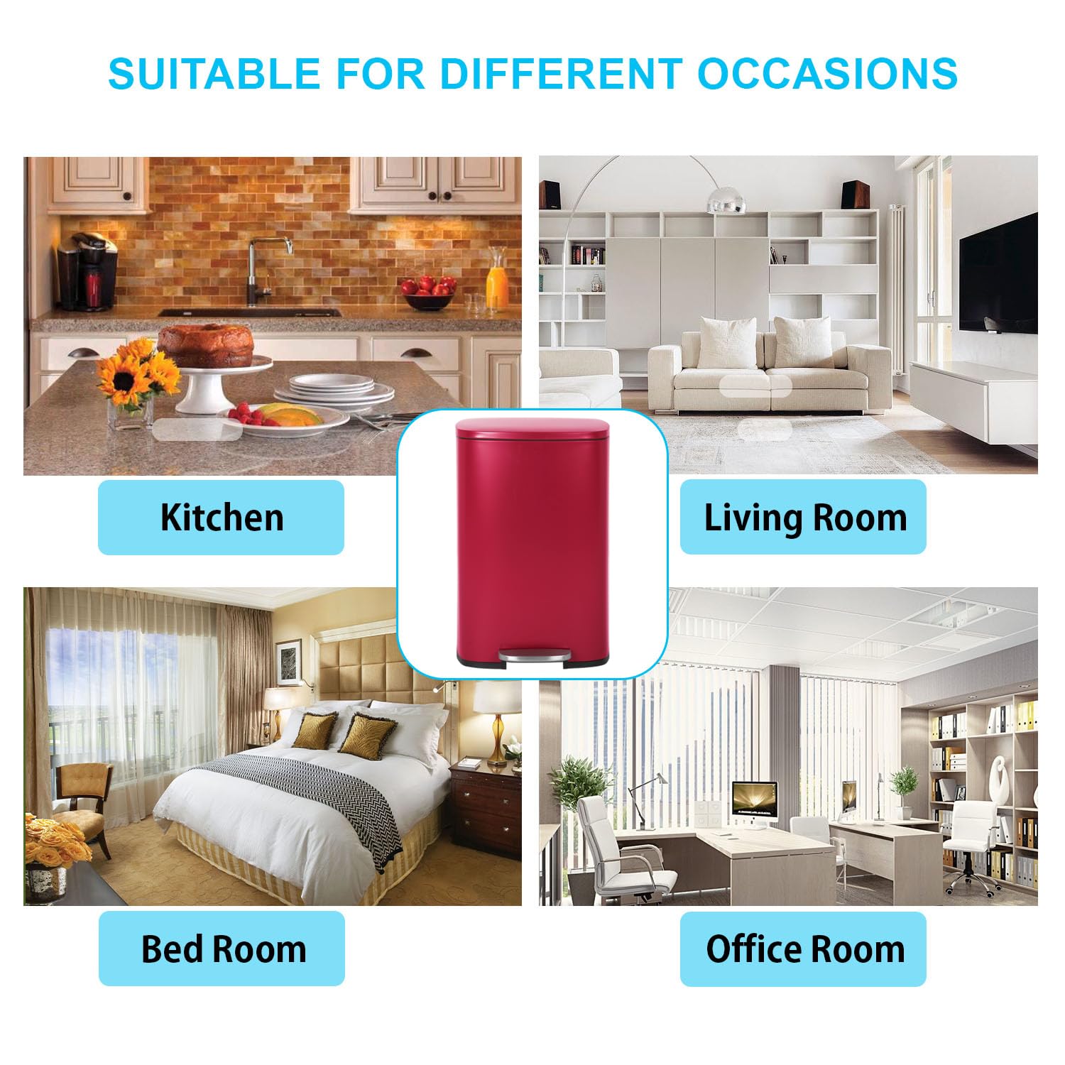 - 13 Gallon Ultra-large Capacity: 13 gallons can absolutely meet your daily use, in the kitchen table next to a kitchen trash can, you will be more convenient to deal with kitchen waste. The regular 13-gallon garbage bag in the supermarket can be used in our stainless steel trash can, and it's kind of you to use a bigger bag. The lid of the garbage can is removable, itβs convenient for you to put in and take out the garbage bag.step trash can kitchen trash can bedroom trash can