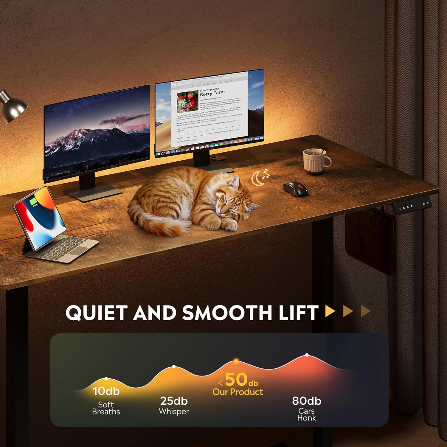 - ăQuite & Smooth Height AdjustmentsăTri-motor system delivers whisper-quiet (<50dB) height transitions (28.35"-46.45") in seconds, eliminating manual adjustments and prevent desktop tilting. Standing desk adjustable height perfected for ergonomic shifts, ensuring buttery-smooth operation whether sitting or standing.
