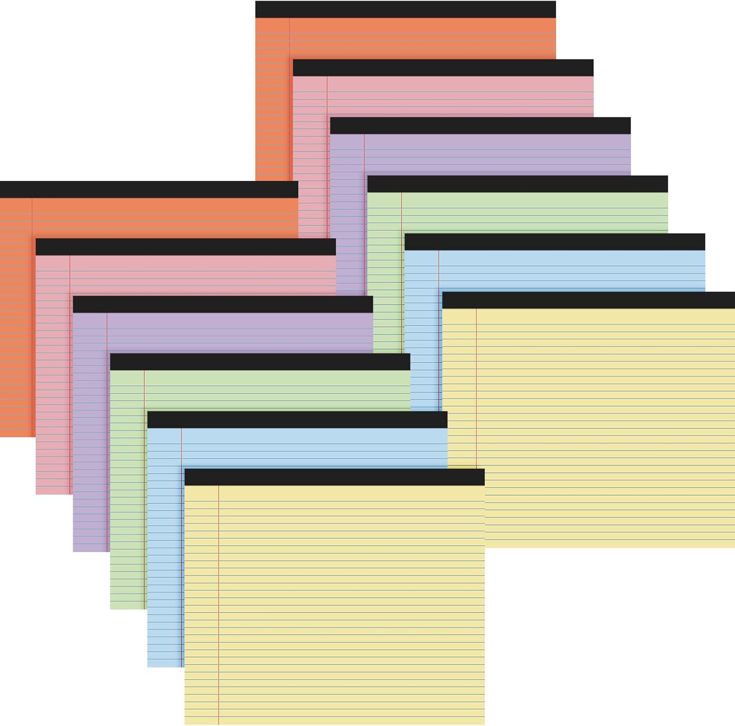 - Enough to Use and Share: each package includes 12 pads of lined notepads 11 x 9.5 inches in 6 different colors, with 40 sheets in each pad, a total of 240 sheets; This ensures a generous quantity to last you for multiple projects or an extended period of time; And you can share them with your family and friends