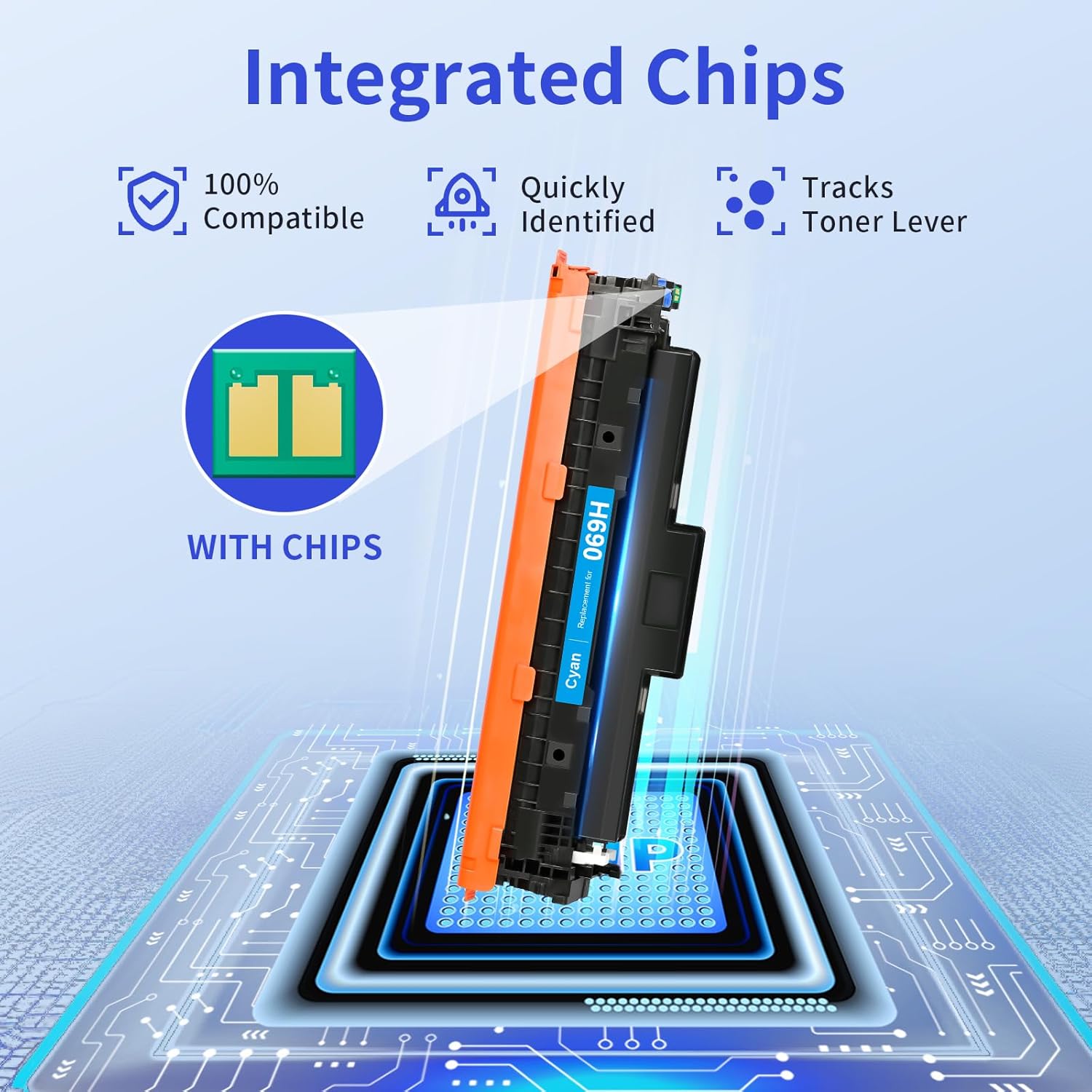 - High Page Yield: Up to 7,600 pages per 069H black toner cartridge, Up to 5,500 Pages per 069H cyan magenta yellow toner cartridge at 5% coverage of A4 Paper