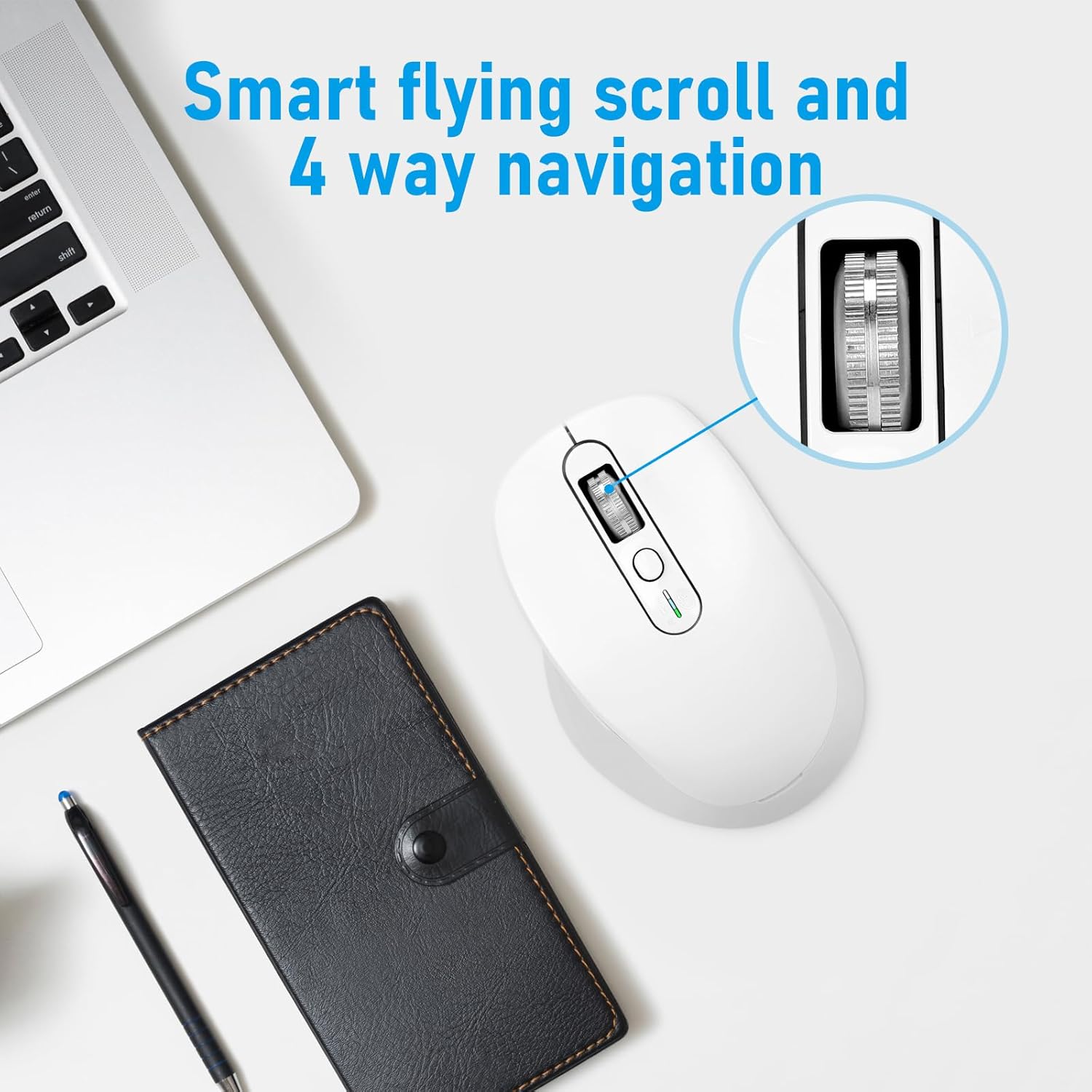 Multi-Device Wireless Bluetooth Mouse, 2.4G USB Receiver and Two Bluetooth, 4-Way Navigation Mice for Computer, Laptop, PC, MacBook, iPad (White)