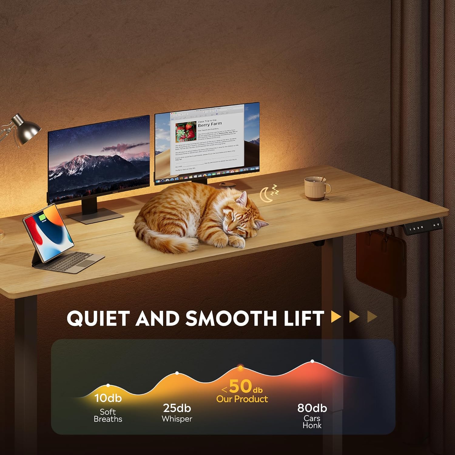 - ăQuite & Smooth Height AdjustmentsăTri-motor system delivers whisper-quiet (<50dB) height transitions (28.35"-46.45") in seconds, eliminating manual adjustments and prevent desktop tilting. Standing desk adjustable height perfected for ergonomic shifts, ensuring buttery-smooth operation whether sitting or standing.