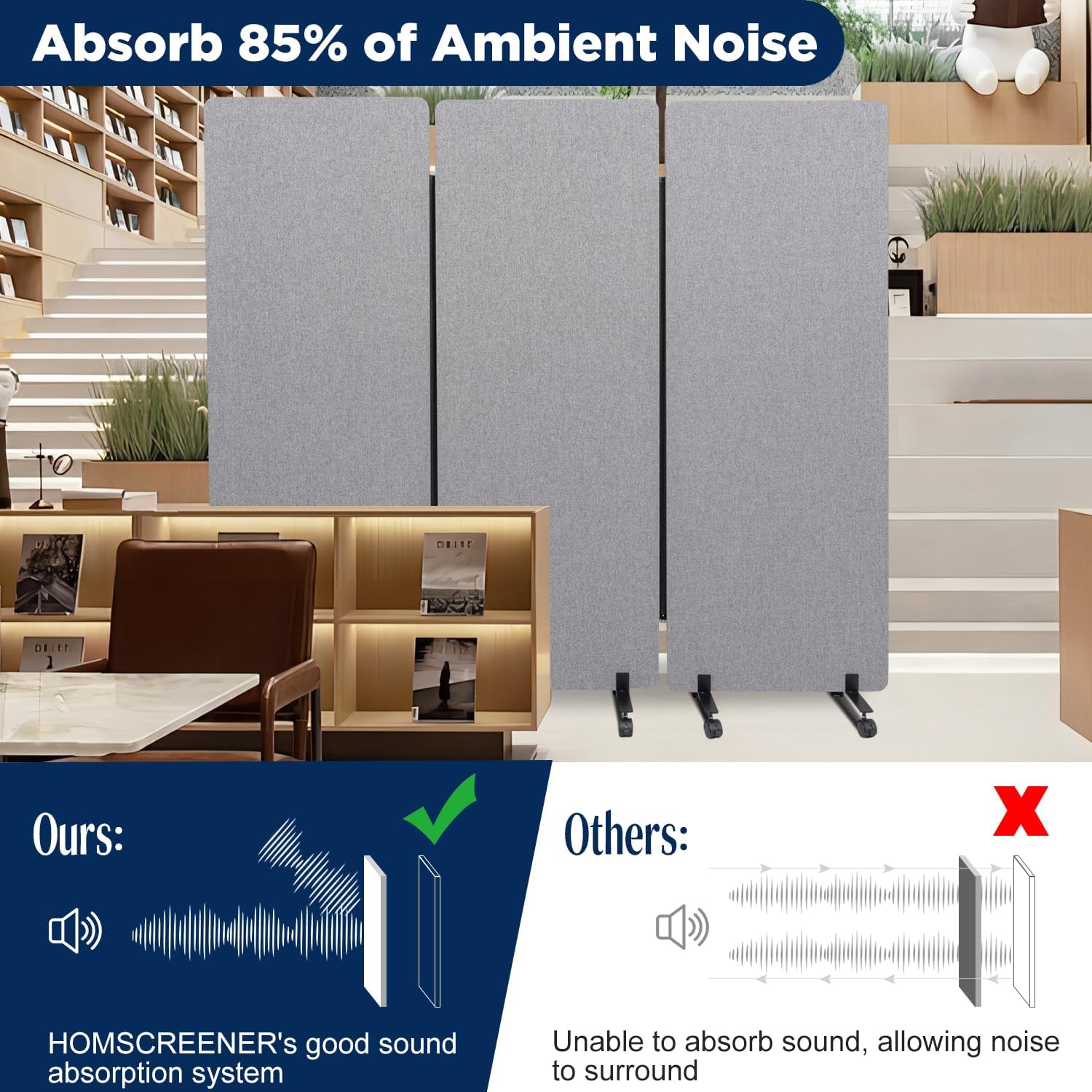 Sound Proof Dividers w/Wheels, Portable Office Wall Divider for Room Partition, Soundproof Room Divider Privacy Panel Partition Cubicle Wall Rolling Temporary Wall for Office