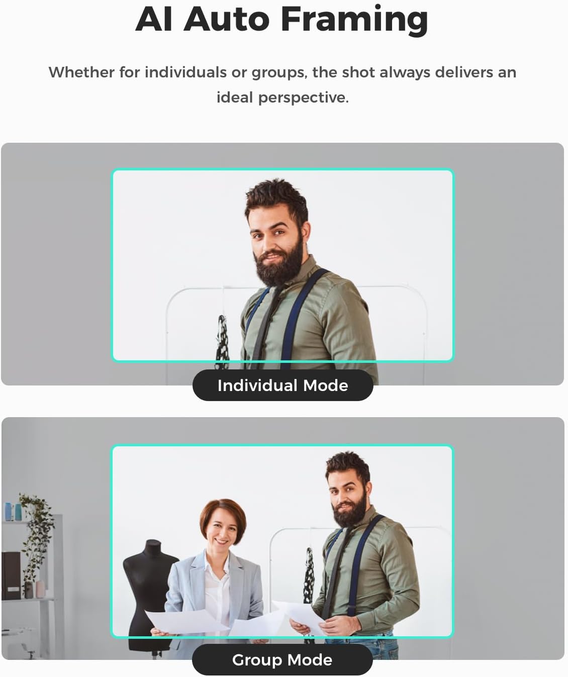 - ăIntelligent AI FramingăActivate our computer camera's group mode and intelligently recognize individuals or groups, optimizing the composition and focus for each frame in real-time. Elevate your group meetings and live streams with ease.