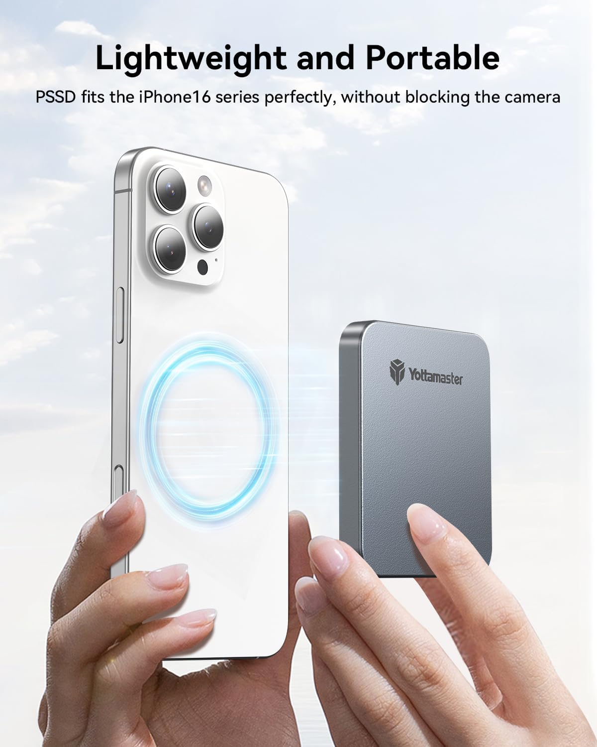 - ăMagnetic DesignăMagnetic pssd 1tb can be directly attached to iPhones and phone cases with MagSafe support, and it also includes a magnetic ring for attachment to devices and cases without built-in magnets. This makes it the ideal choice for mobile photography enthusiasts, allowing you to store a large number of high-resolution photos and videos anytime, anywhere, combining portability and efficiency perfectly.!!Note: When using the PSSD with a phone case, it is recommended to use the included magnetic ring to prevent detachment due to insufficient magnetic force.