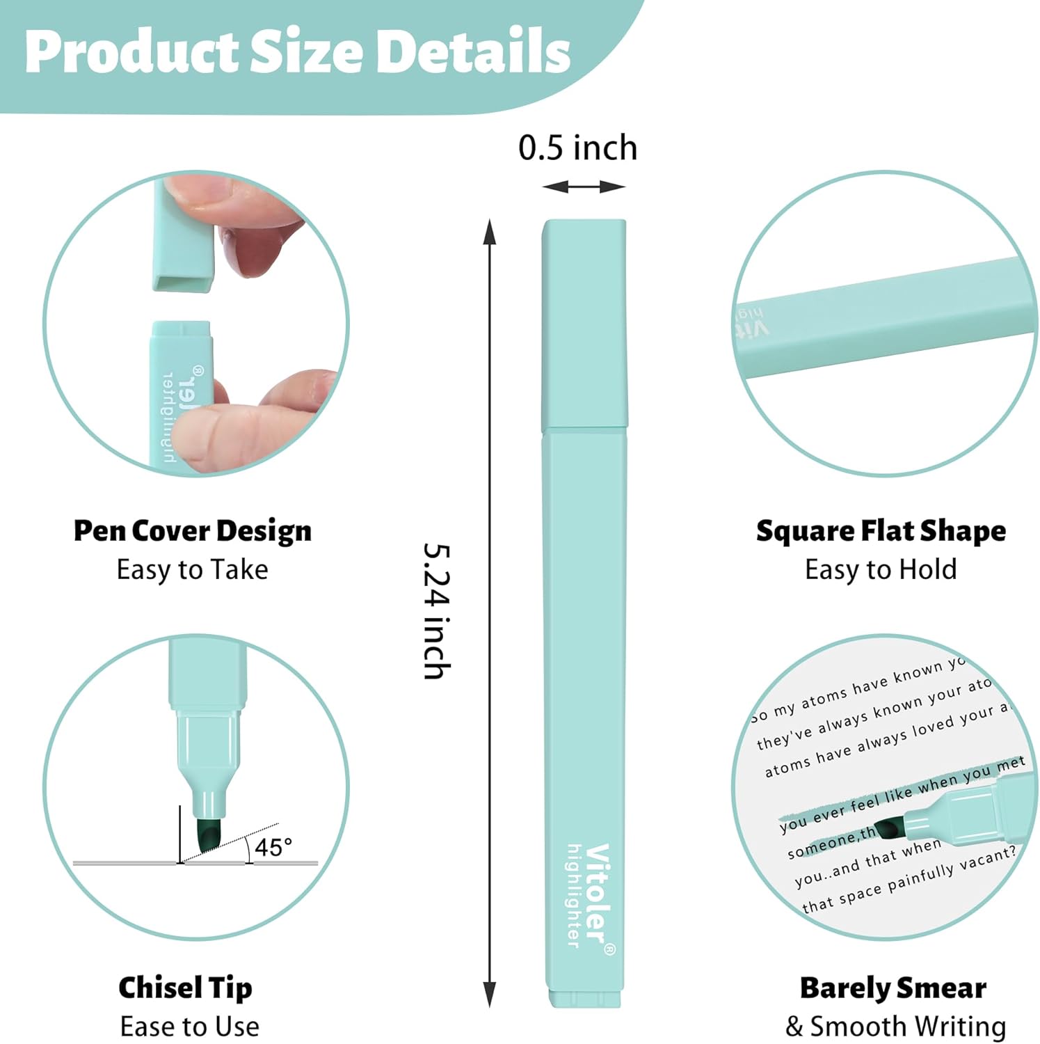 - Cute Pens Easy to Hold: The pastel highlighter is designed with square shape,itβs comfortable and easy to hold, without a sore hand and don't roll around while using.