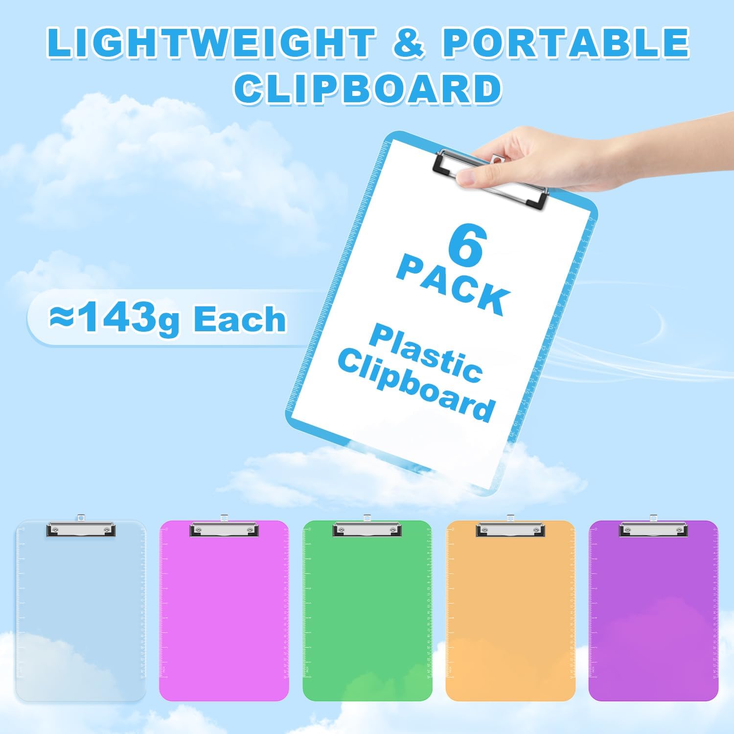 TOTiyea Clipboard (Set of 6), 12.5 x 9 Inch Multi Color, Plastic Clipboard with Low Profile Clip, 75 Sheets Capacity, Standard Letter Size A4