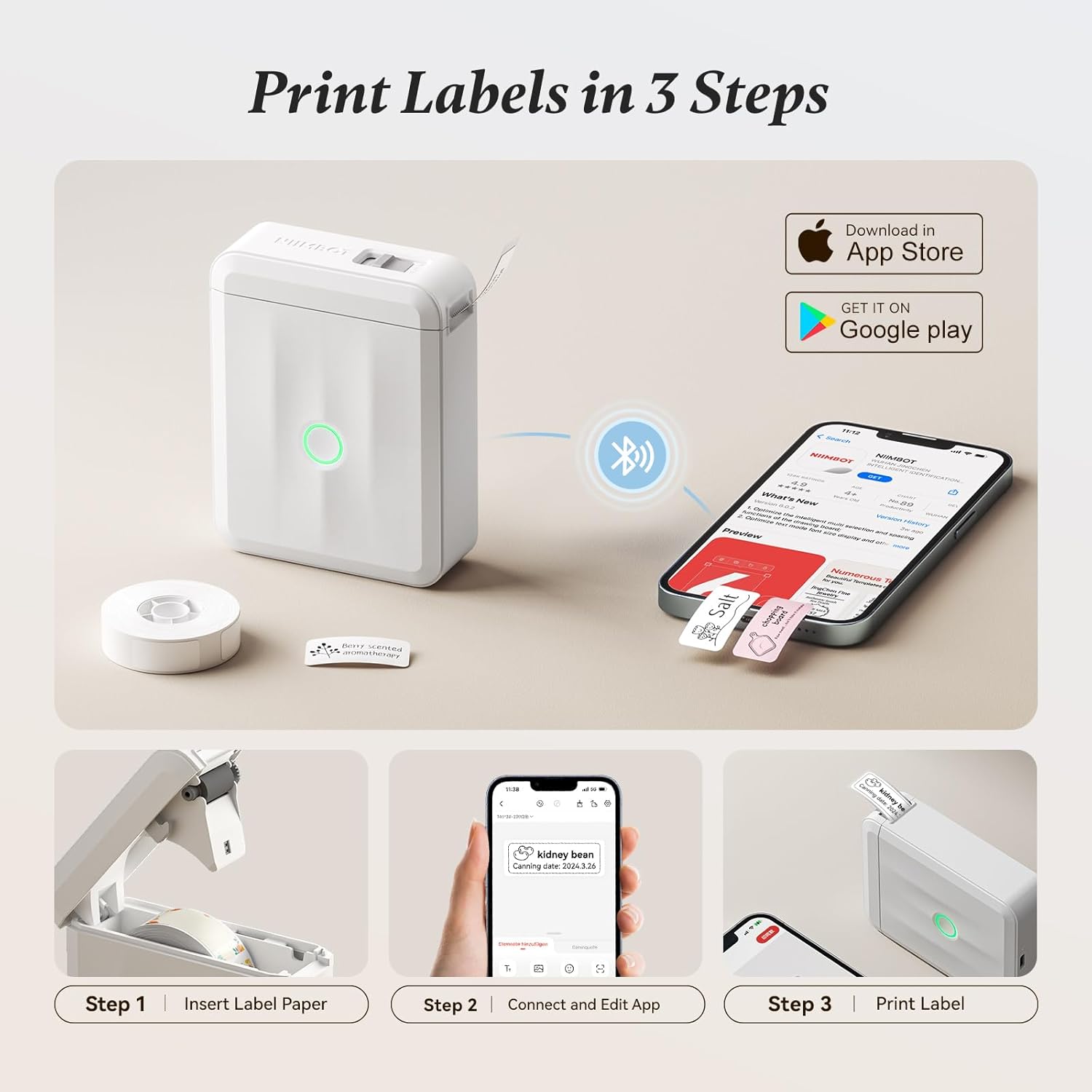 NIIMBOT Label Maker Machine Bluetooth Label Printer for School Home Office Organization, Wireless Mini Label Maker D110 Upgraded Version, Sticker Label Maker with 3Rolls Labels