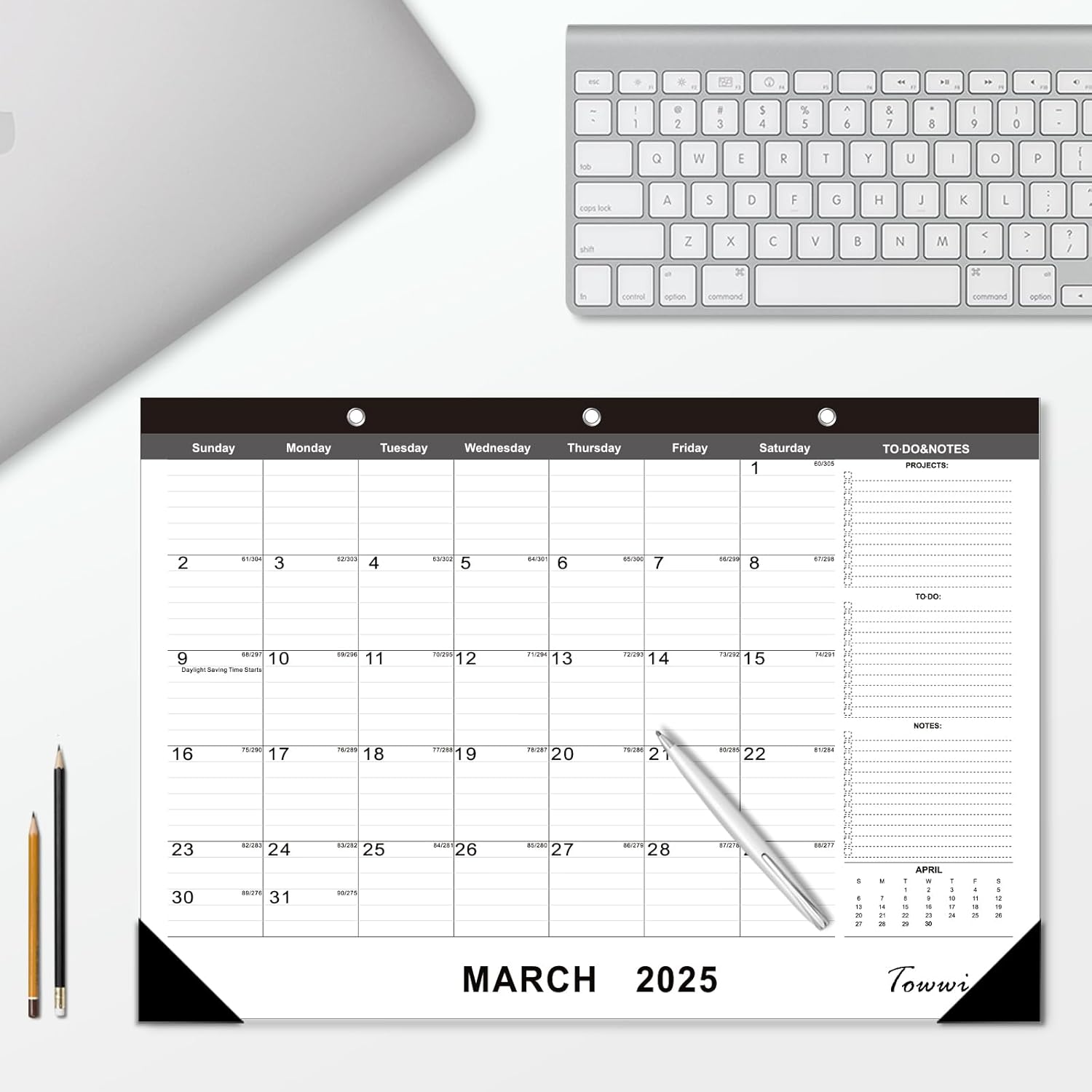 TOWWI 2025-2026 Desk Calendar, 17"x12" Desktop Monthly Calenda for Home, Office, Family with To-do List, Ruled Blocks, Corner Protectors