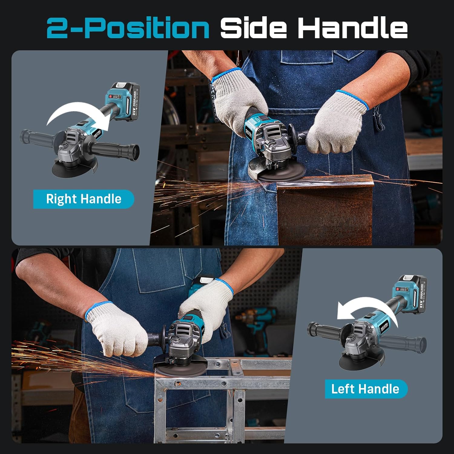 - High-Performance Brushless Motor: The Seesii angle grinder cordless features a high-efficiency brushless motor that eliminates the need for frequent carbon brush replacements. It operates with less noise, reduces energy consumption, and offers a longer lifespan, making it a more durable and efficient tool for any job.
