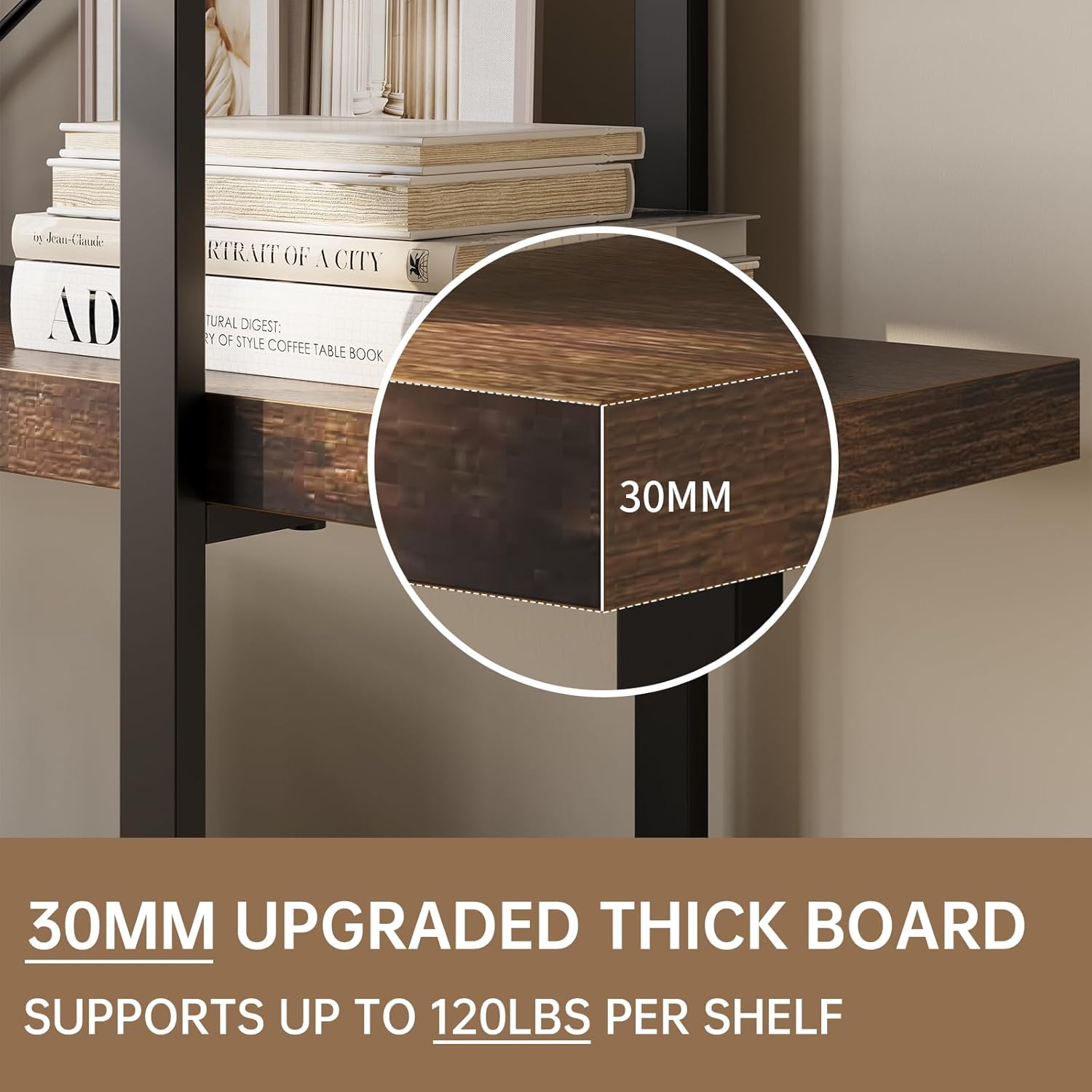 - Stable and Durable Construction: Capable of holding heavy items securely, this bookcase features a matte black steel frame with X-shaped support, adjustable feet, and two anti-tip devices, ensuring enhanced stability and durability for your belongings