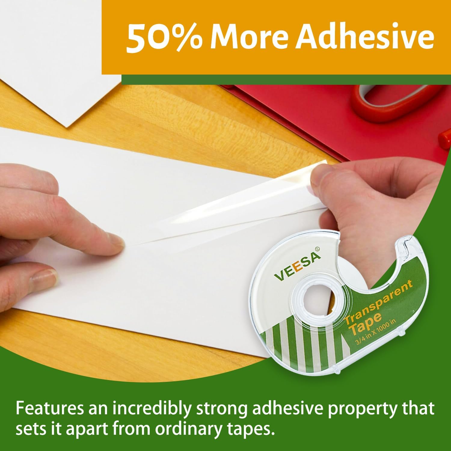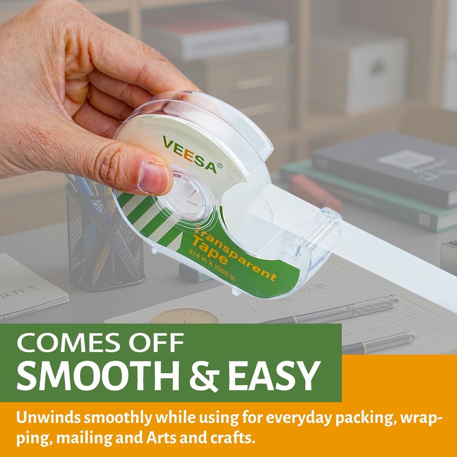 VEESA Transparent Tape with Dispenser, 3/4 x 1000 Inches, 12 Rolls Clear Tapes and Refillable Dispensers, Office Tape Rolls with Dispenser Bulk for Craft Jobs, Home & School Supplies