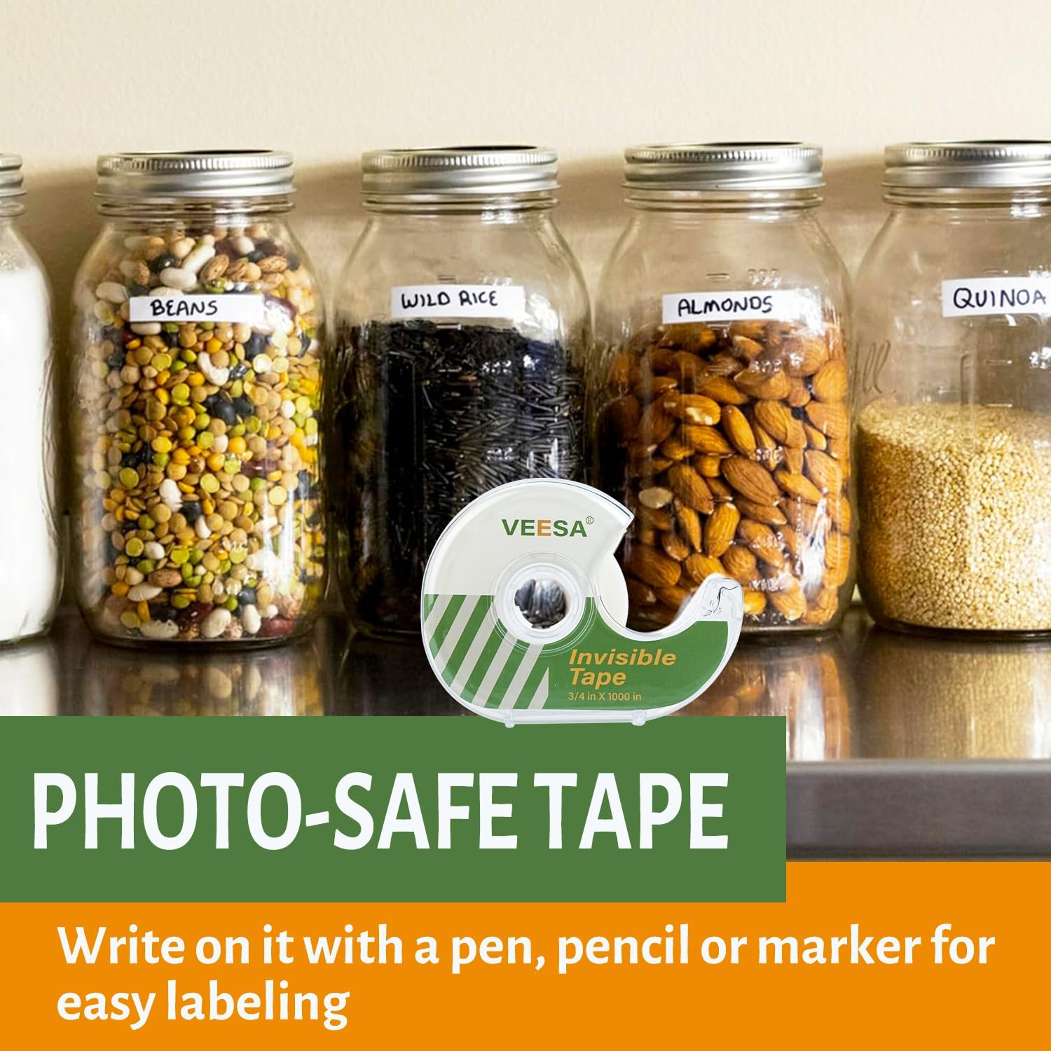 VEESA Invisible Tape with Dispenser, 12 Rolls, 3/4 x1000 Inches, Matte Finish, Gift Wrapping Tape for Label & Mend, Classroom, Office, Back to School Supplies