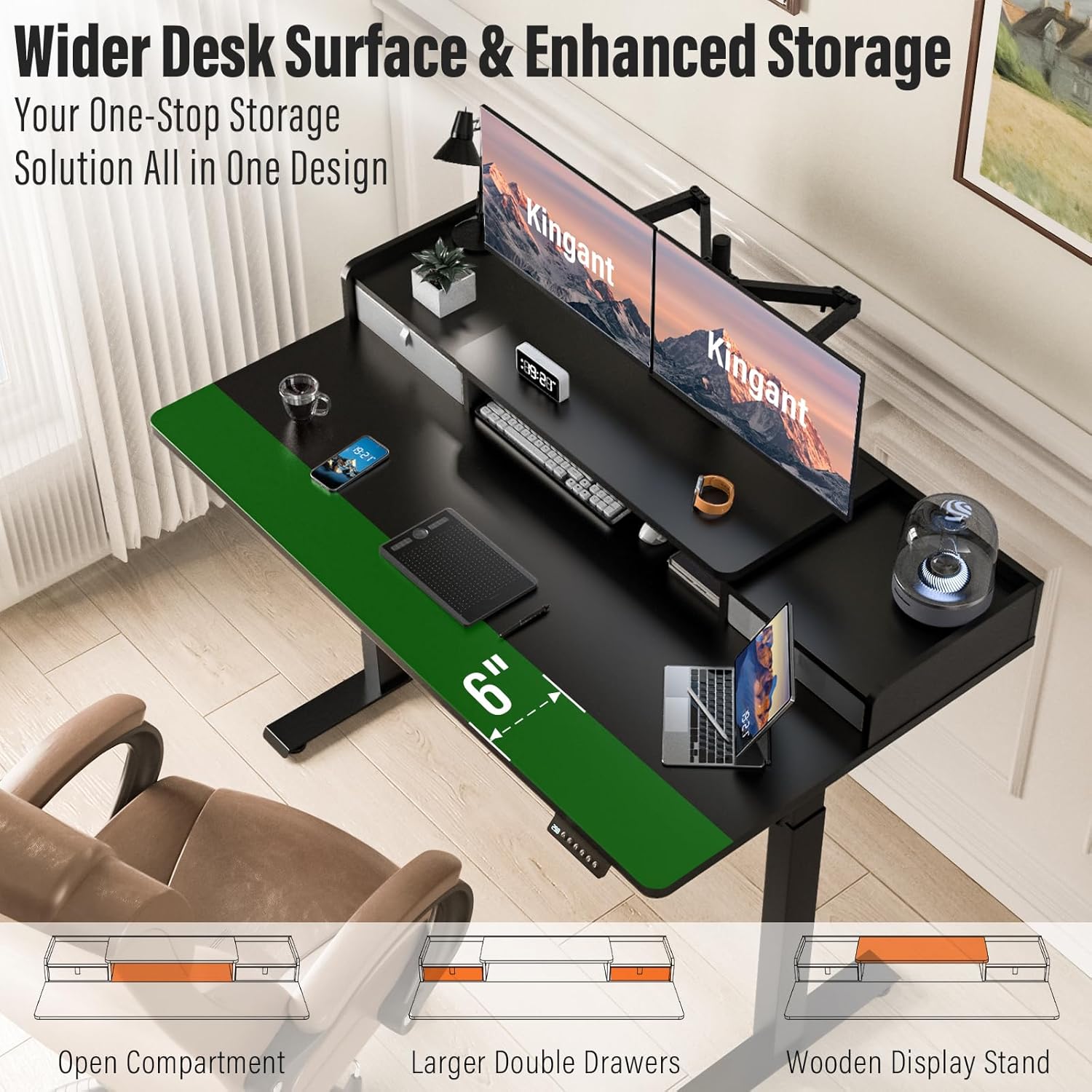 - Special Feature : 3 Memory Height Presets, 30" Extra-Width Desktop, Cable Management Tray, Thickened Support Legs