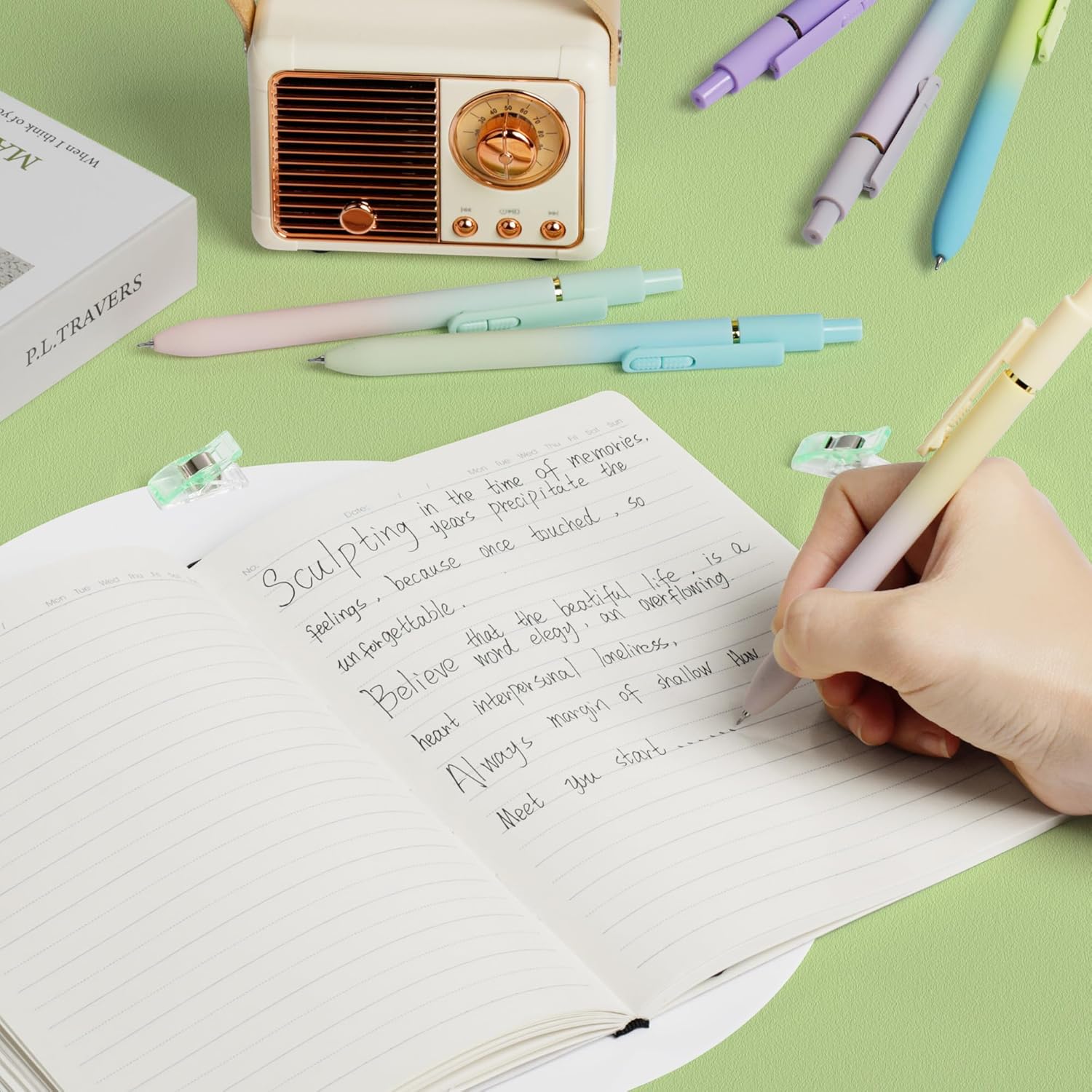 8Pcs Gel Pens with Black Ink, Fine Point Smooth Writing Pens, Quick-dry Gel Retractable Pens for Journaling Note Taking, Cute Office School Supplies for Adults Kids (0.7mm, Gradient)