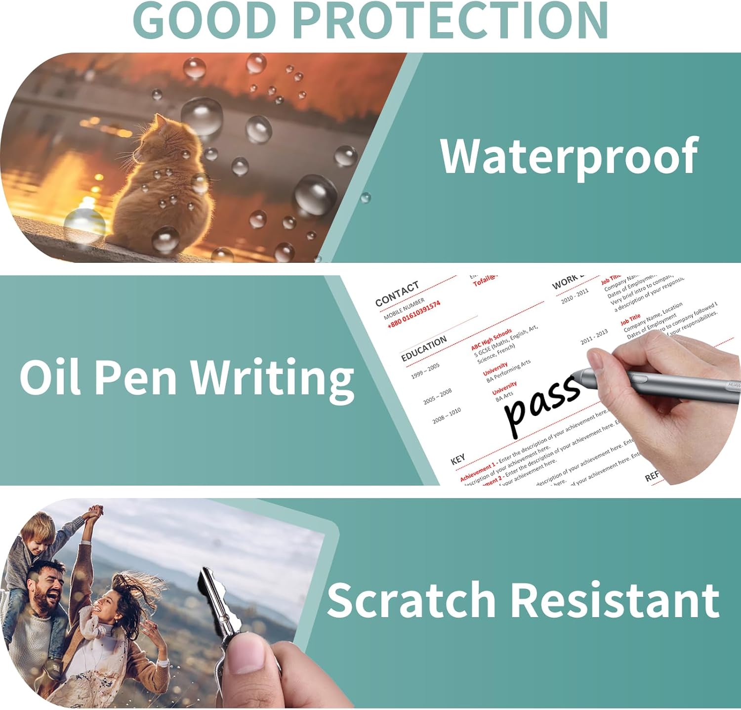 - Premium Material - Laminates are made of premium quality materials and are safe to process. Laceration resistant, double coating, anti-stain and waterproof. Write directly on the water-resistant pouch with dry-erase markers and easily wipe away any markings, the laminate sheet securely protects your document